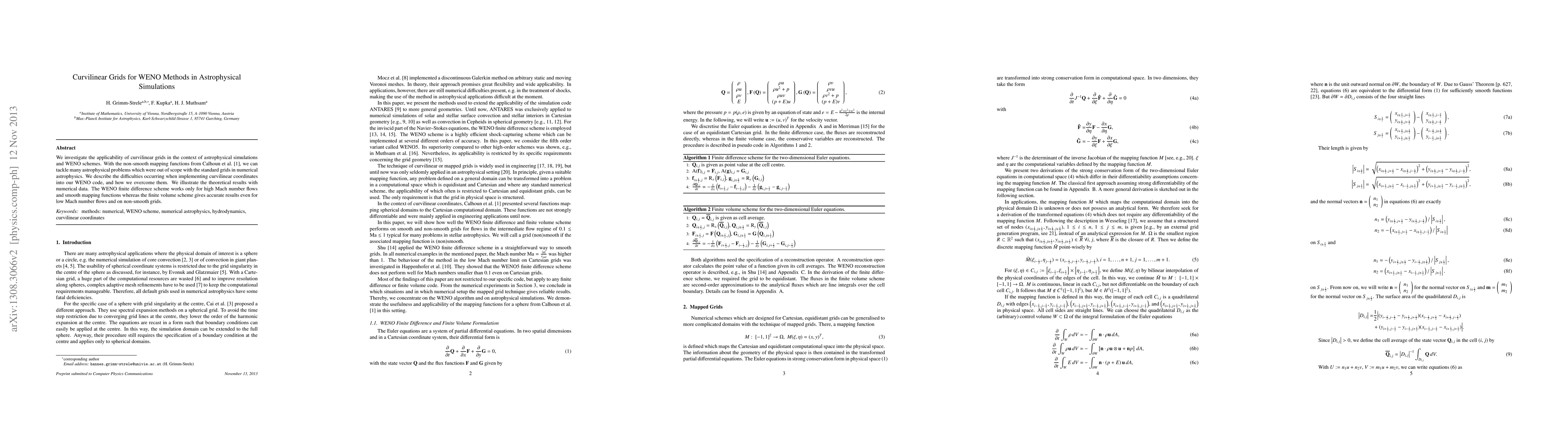 We investigate the applicability of curvilinear grids in the context of astrophysical simulations and WENO schemes. With the non-smooth mapping functions from Calhoun et al. (2008), we can tackle many astrophysical problems which were out of scope with the standard grids in numerical astrophysics. We describe the difficulties occurring when implementing curvilinear coordinates into our WENO code, and how we overcome them. We illustrate the theoretical results with numerical data. The WENO finite difference scheme works only for high Mach number flows and smooth mapping functions whereas the finite volume scheme gives accurate results even for low Mach number flows and on non-smooth grids.
