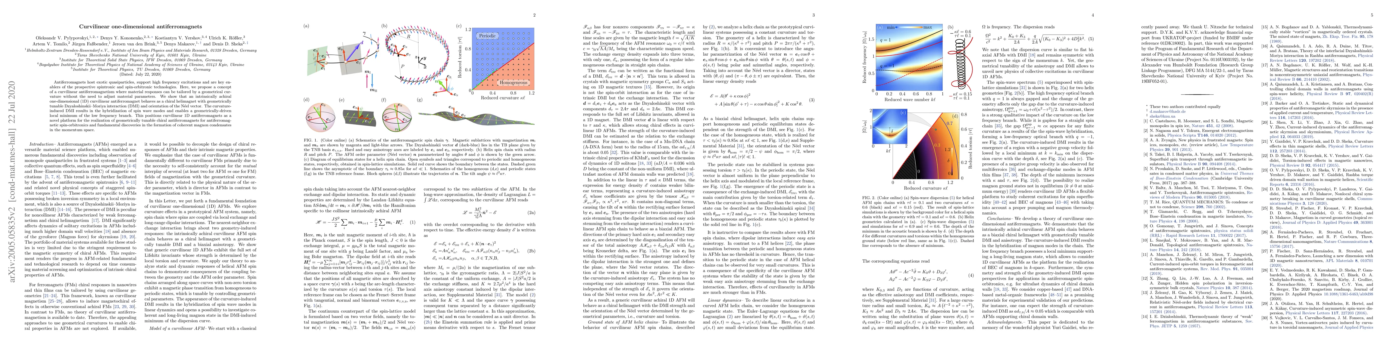Antiferromagnets host exotic quasiparticles, support high frequency excitations and are key enablers of the prospective spintronic and spin-orbitronic technologies. Here, we propose a concept of a curvilinear antiferromagnetism where material responses can be tailored by a geometrical curvature without the need to adjust material parameters. We show that an intrinsically achiral one-dimensional (1D) curvilinear antiferromagnet behaves as a chiral helimagnet with geometrically tunable Dzyaloshinskii--Moriya interaction (DMI) and orientation of the N\'{e}el vector. The curvature-induced DMI results in the hybridization of spin wave modes and enables a geometrically-driven local minimum of the low frequency branch. This positions curvilinear 1D antiferromagnets as a novel platform for the realization of geometrically tunable chiral antiferromagnets for antiferromagnetic spin-orbitronics and fundamental discoveries in the formation of coherent magnon condensates in the momentum space.