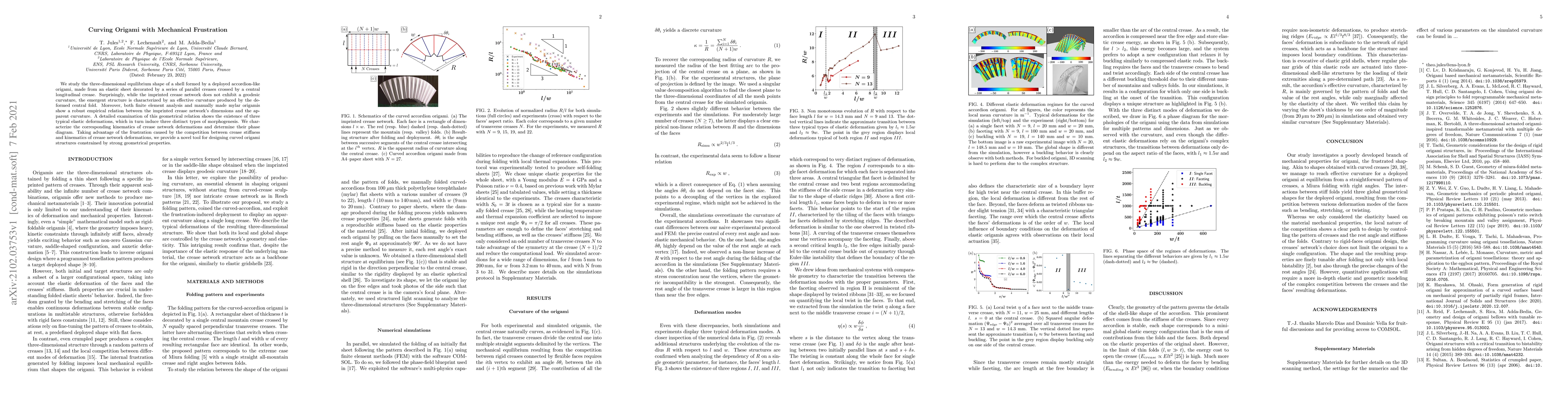 We study the three-dimensional equilibrium shape of a shell formed by a deployed accordion-like origami, made from an elastic sheet decorated by a series of parallel creases crossed by a central longitudinal crease. Surprisingly, while the imprinted crease network does not exhibit a geodesic curvature, the emergent structure is characterized by an effective curvature produced by the deformed central fold. Moreover, both finite element analysis and manually made mylar origamis show a robust empirical relation between the imprinted crease network's dimensions and the apparent curvature. A detailed examination of this geometrical relation shows the existence of three typical elastic deformations, which in turn induce three distinct types of morphogenesis. We characterize the corresponding kinematics of crease network deformations and determine their phase diagram. Taking advantage of the frustration caused by the competition between crease stiffness and kinematics of crease network deformations, we provide a novel tool for designing curved origami structures constrained by strong geometrical properties.