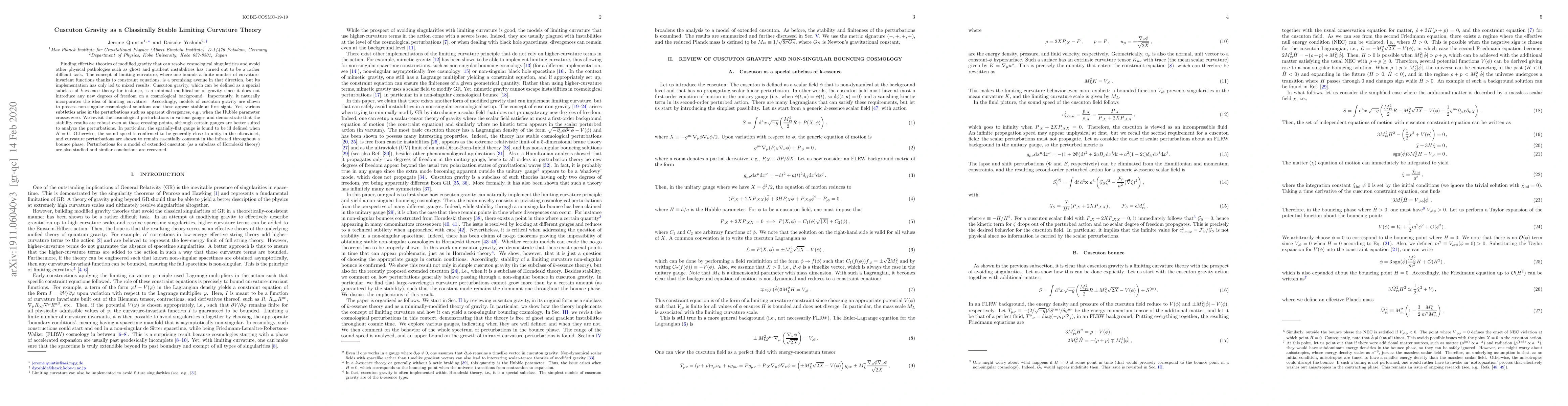 This paper explores cuscuton gravity, a subclass of $k$-essence theory, as a stable limiting curvature theory that avoids cosmological singularities and instabilities. It demonstrates that cuscuton gravity provides non-singular cosmological solutions and maintains stability even when perturbations encounter issues like Hubble parameter crossing zero, with the spatially-flat gauge proving problematic at $H=0$.