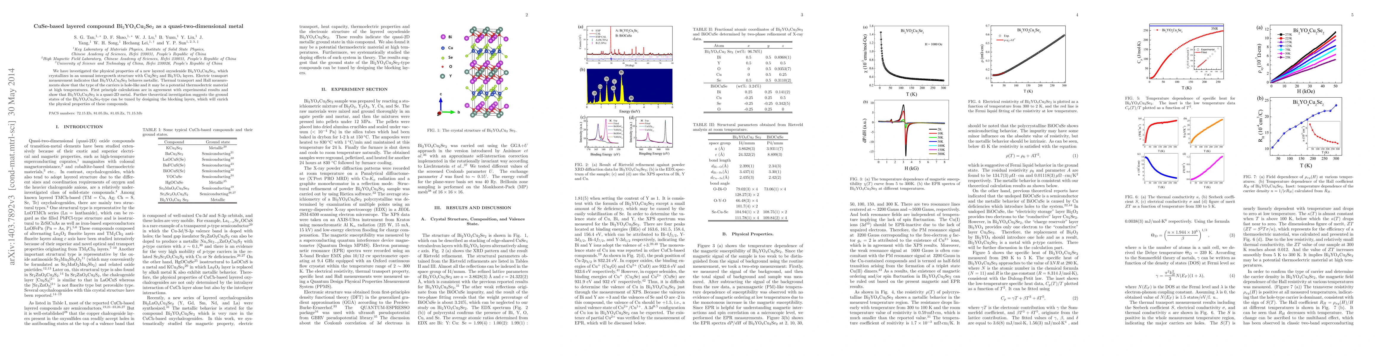 Bi$_{2}$YO$_{4}$Cu$_{2}$Se$_{2}$ is a newly discovered layered compound that behaves as a metallic quasi-2D metal, with potential for high-temperature thermoelectric applications.