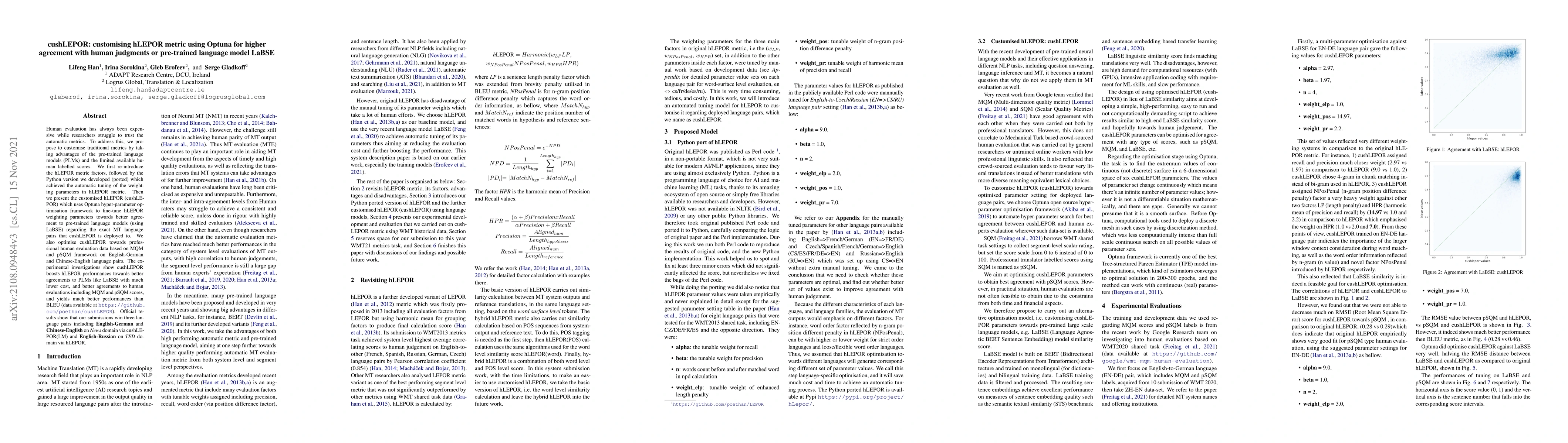 Human evaluation has always been expensive while researchers struggle to trust the automatic metrics. To address this, we propose to customise traditional metrics by taking advantages of the pre-trained language models (PLMs) and the limited available human labelled scores. We first re-introduce the hLEPOR metric factors, followed by the Python version we developed (ported) which achieved the automatic tuning of the weighting parameters in hLEPOR metric. Then we present the customised hLEPOR (cushLEPOR) which uses Optuna hyper-parameter optimisation framework to fine-tune hLEPOR weighting parameters towards better agreement to pre-trained language models (using LaBSE) regarding the exact MT language pairs that cushLEPOR is deployed to. We also optimise cushLEPOR towards professional human evaluation data based on MQM and pSQM framework on English-German and Chinese-English language pairs. The experimental investigations show cushLEPOR boosts hLEPOR performances towards better agreements to PLMs like LaBSE with much lower cost, and better agreements to human evaluations including MQM and pSQM scores, and yields much better performances than BLEU (data available at \url{https://github.com/poethan/cushLEPOR}). Official results show that our submissions win three language pairs including \textbf{English-German} and \textbf{Chinese-English} on \textit{News} domain via cushLEPOR(LM) and \textbf{English-Russian} on \textit{TED} domain via hLEPOR.