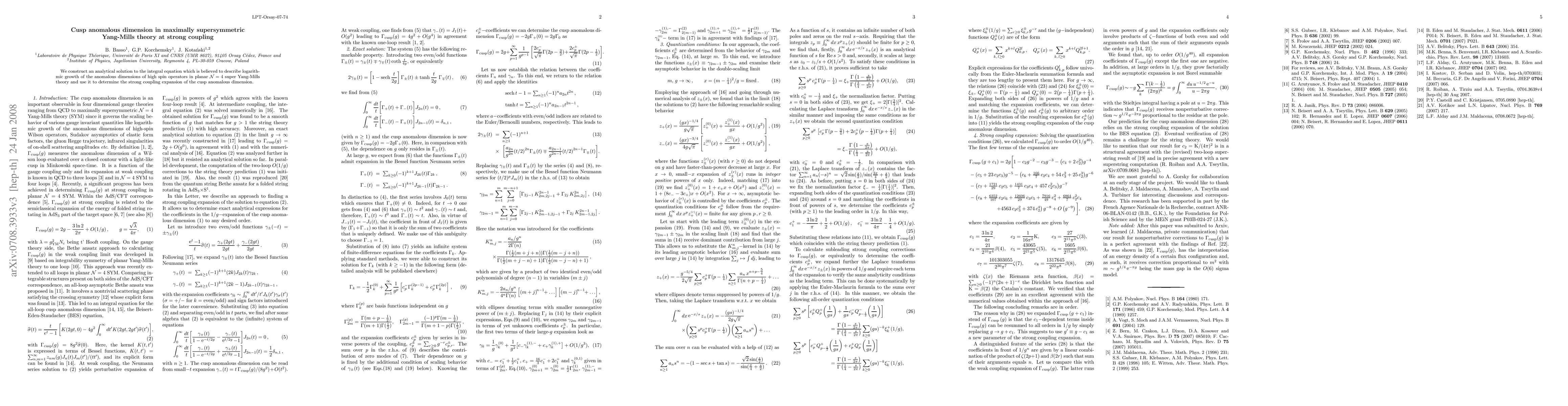 Summary: This paper presents an exact analytical solution to an integral equation governing the logarithmic growth of anomalous dimensions in N=4 super Yang-Mills theory, revealing the strong coupling expansion of the cusp anomalous dimension. The results provide deeper insights into the behavior of high spin operators at strong coupling.