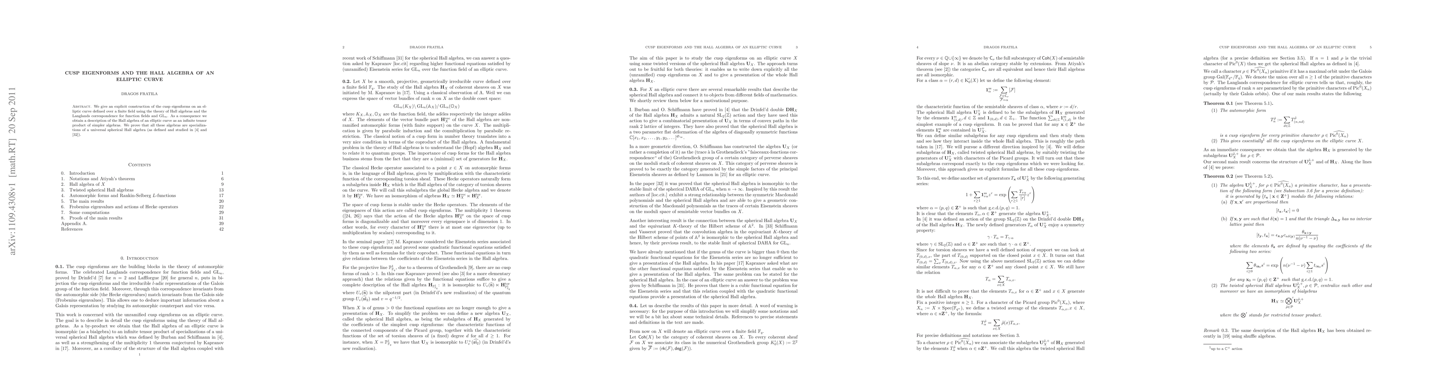 Researchers developed a new method to construct cusp eigenforms on elliptic curves using Hall algebras, providing a description of the Hall algebra as an infinite tensor product of simpler algebras.