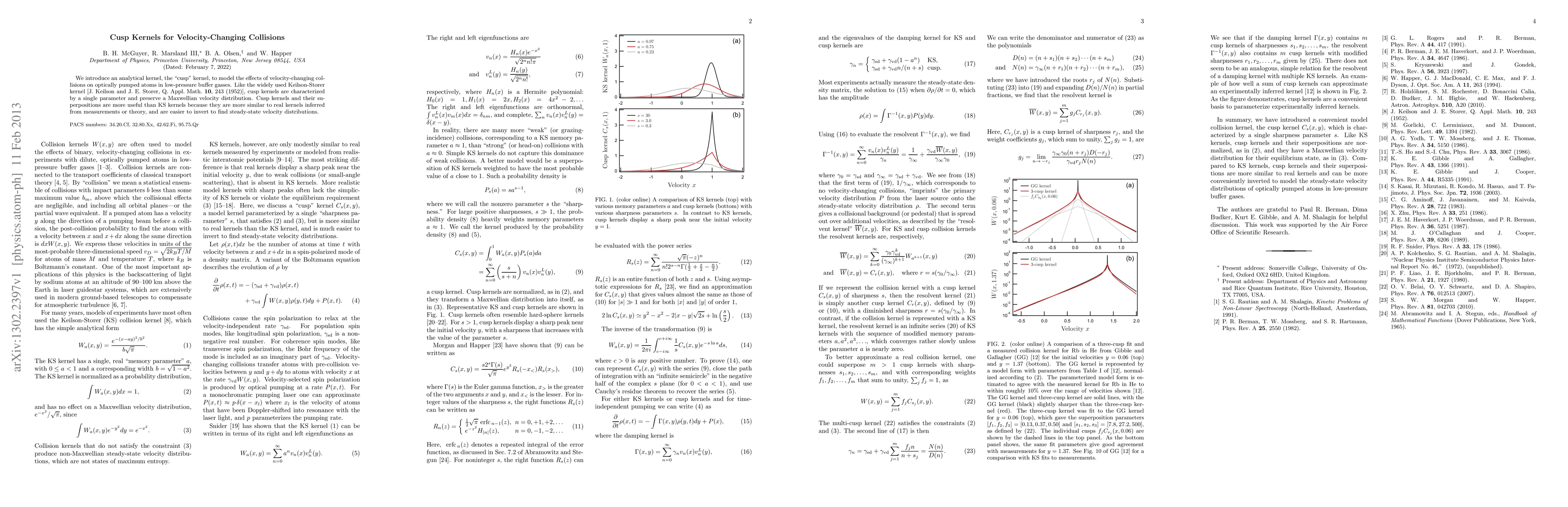 This paper introduces the "cusp" kernel to model velocity-changing collisions in optically pumped atoms, offering a more accurate and invertible alternative to the traditional Keilson-Storer kernel while maintaining a Maxwellian velocity distribution.