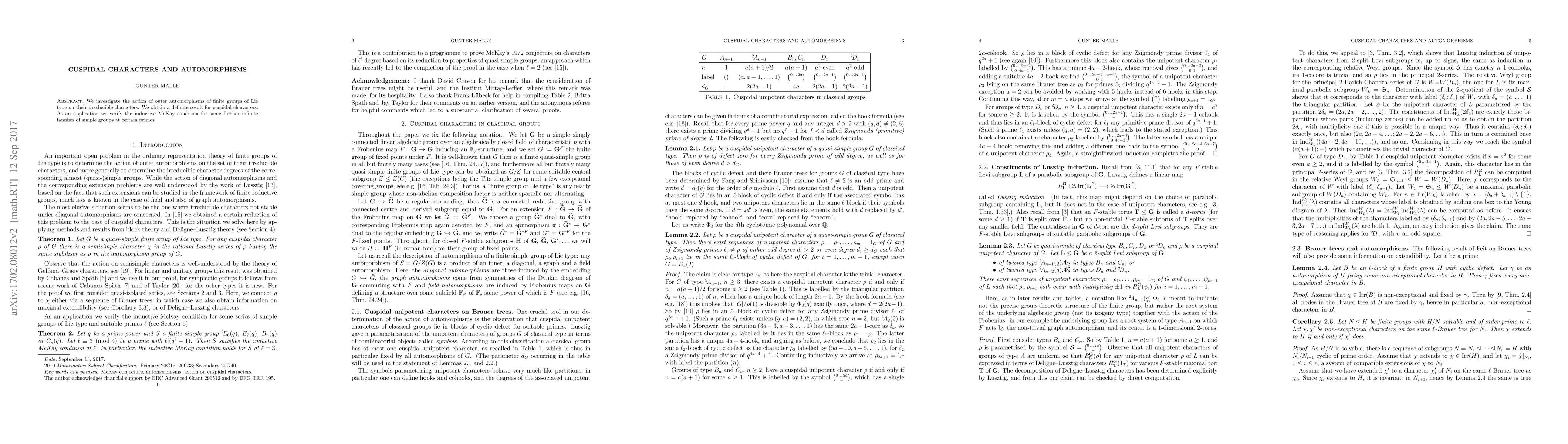 Researchers investigated how outer automorphisms of finite groups affect their irreducible characters, making a key finding about cuspidal characters that has implications for the McKay condition in infinite families of simple groups.