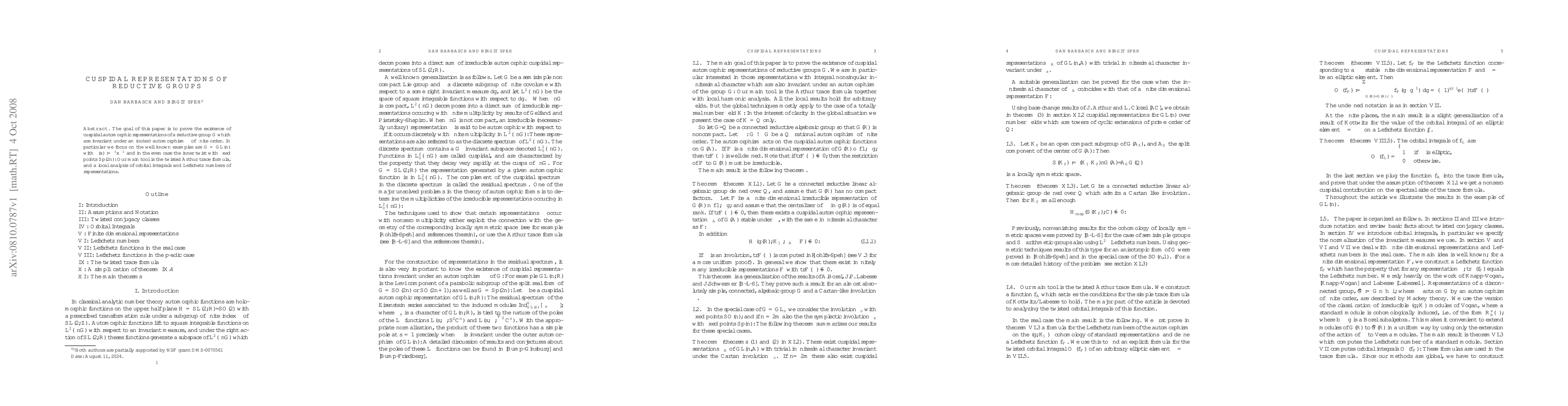 This paper proves the existence of cuspidal automorphic forms for reductive groups with finite order automorphisms, using local analysis and the Arthur-Selberg trace formula.