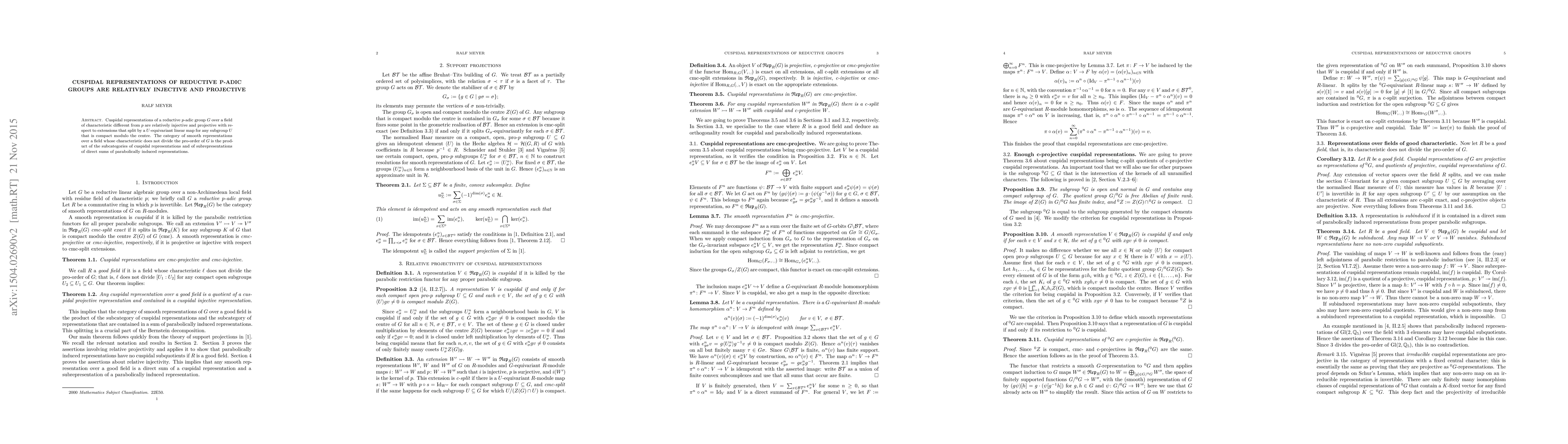 Summary: Cuspidal representations of reductive p-adic groups are shown to be both relatively injective and projective concerning extensions split by U-equivariant maps for compact modulo center subgroups. The smooth representation category is decomposed into cuspidal representations and subrepresentations of parabolic inductions.