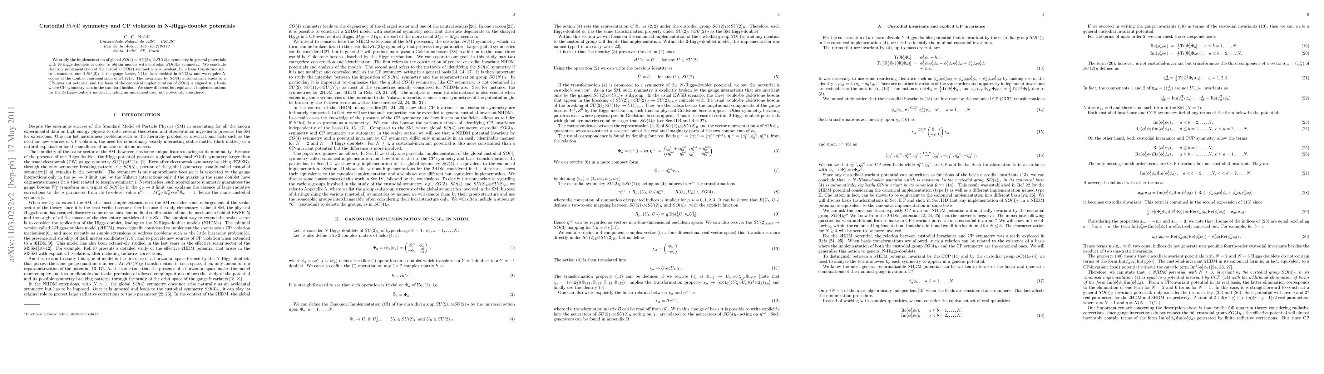 This paper explores the custodial $SO(4)$ symmetry in N-Higgs-doublet models, demonstrating that any such symmetry implementation is equivalent to a canonical form under specific conditions. It also reveals that this symmetry inherently leads to CP invariance without additional CP-violating terms.