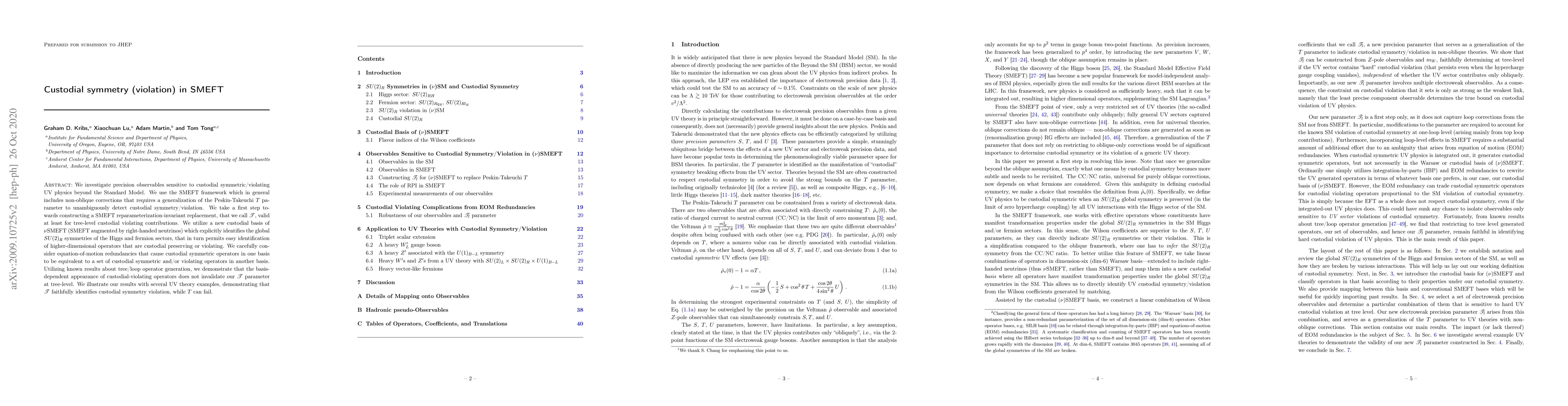 We investigate precision observables sensitive to custodial symmetric/violating UV physics beyond the Standard Model. We use the SMEFT framework which in general includes non-oblique corrections that requires a generalization of the Peskin-Takeuchi $T$ parameter to unambiguously detect custodial symmetry/violation. We take a first step towards constructing a SMEFT reparameterization-invariant replacement, that we call $\mathscr{T}$, valid at least for tree-level custodial violating contributions. We utilize a new custodial basis of $\nu$SMEFT (SMEFT augmented by right-handed neutrinos) which explicitly identifies the global $SU(2)_R$ symmetries of the Higgs and fermion sectors, that in turn permits easy identification of higher-dimensional operators that are custodial preserving or violating. We carefully consider equation-of-motion redundancies that cause custodial symmetric operators in one basis to be equivalent to a set of custodial symmetric and/or violating operators in another basis. Utilizing known results about tree/loop operator generation, we demonstrate that the basis-dependent appearance of custodial-violating operators does not invalidate our $\mathscr{T}$ parameter at tree-level. We illustrate our results with several UV theory examples, demonstrating that $\mathscr{T}$ faithfully identifies custodial symmetry violation, while $T$ can fail.