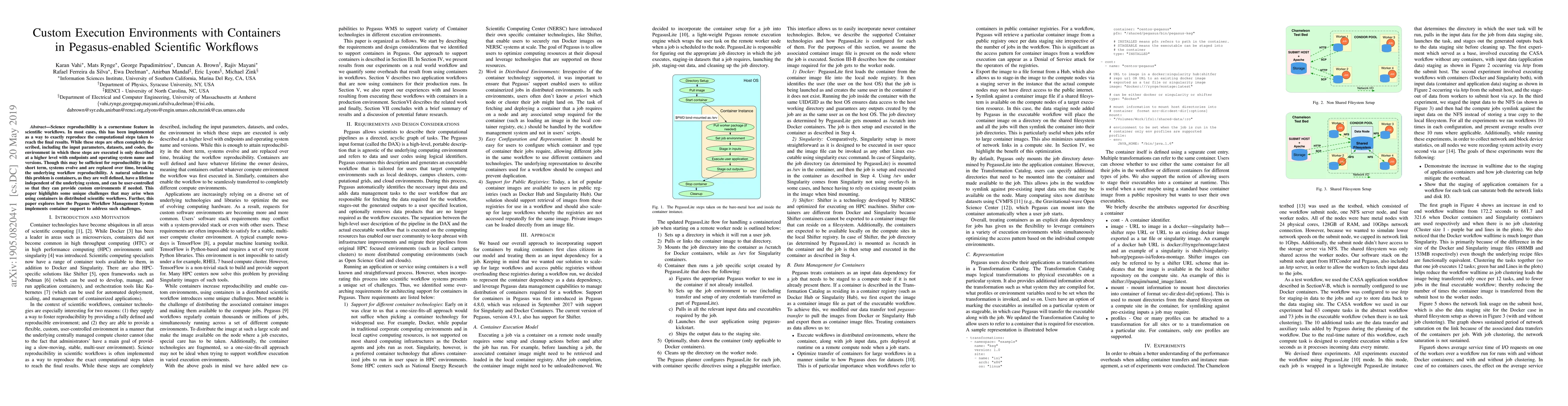 This paper discusses the use of containers to enhance reproducibility in Pegasus-enabled scientific workflows by providing custom execution environments that remain stable over time, despite system changes. It explores the unique challenges associated with container integration in distributed workflows and outlines Pegasus' approach to container support.