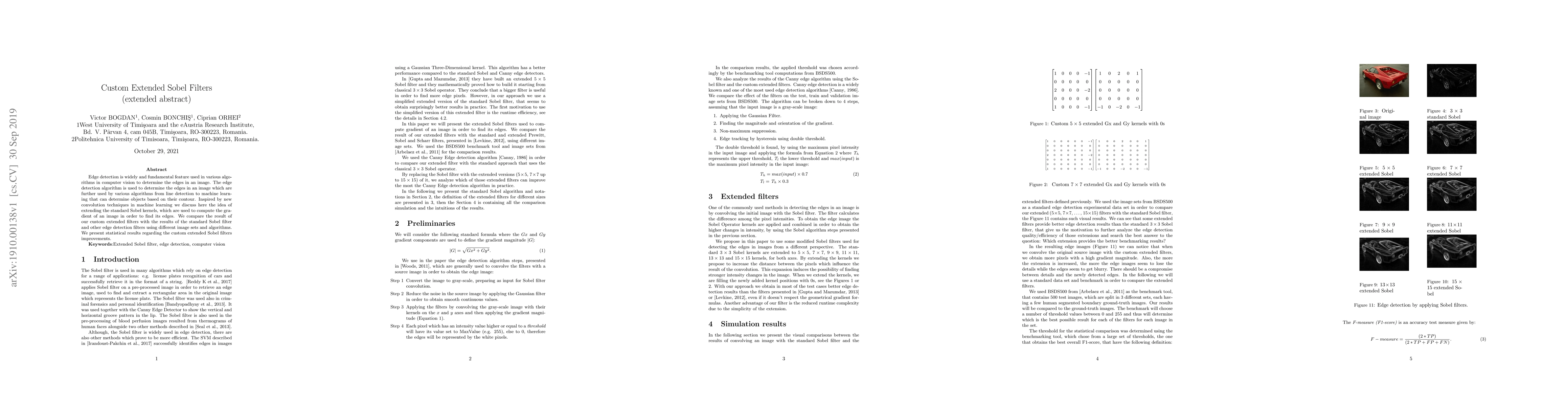This paper proposes custom extended Sobel filters for enhanced edge detection in computer vision, comparing their performance against standard Sobel filters and other methods, and presenting statistical evidence of their improvements.