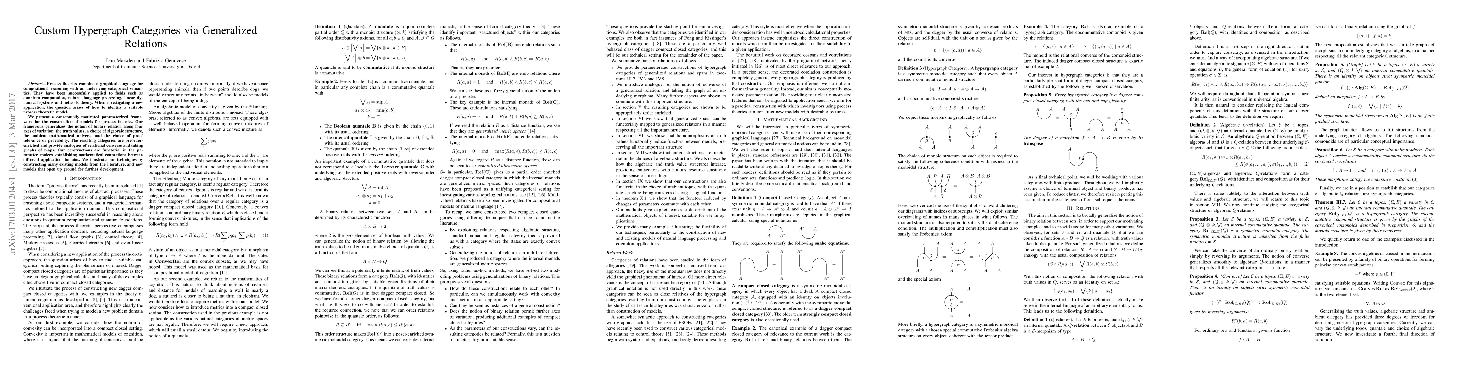 Process theories combine a graphical language for compositional reasoning with an underlying categorical semantics. They have been successfully applied to fields such as quantum computation, natural language processing, linear dynamical systems and network theory. When investigating a new application, the question arises of how to identify a suitable process theoretic model. We present a conceptually motivated parameterized framework for the construction of models for process theories. Our framework generalizes the notion of binary relation along four axes of variation, the truth values, a choice of algebraic structure, the ambient mathematical universe and the choice of proof relevance or provability. The resulting categories are preorder-enriched and provide analogues of relational converse and taking graphs of maps. Our constructions are functorial in the parameter choices, establishing mathematical connections between different application domains. We illustrate our techniques by constructing many existing models from the literature, and new models that open up ground for further development.