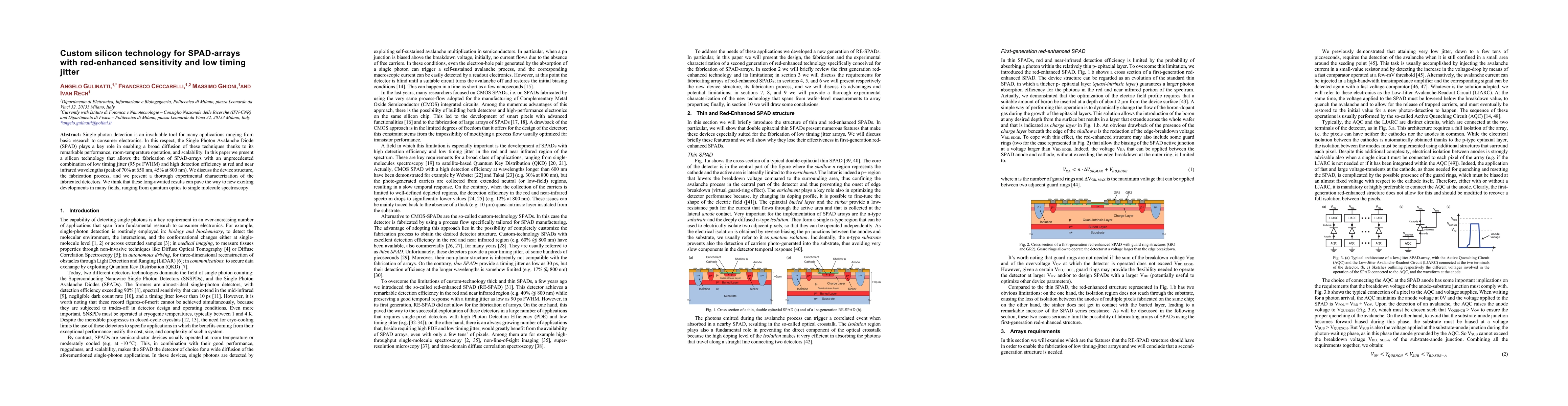 This paper introduces a novel silicon technology for fabricating SPAD-arrays, achieving unprecedented low timing jitter (95 ps FWHM) and high detection efficiency at red and near-infrared wavelengths (70% at 650 nm, 45% at 800 nm). The device structure and fabrication process are detailed, along with experimental characterization, potentially advancing applications in quantum optics and single molecule spectroscopy.