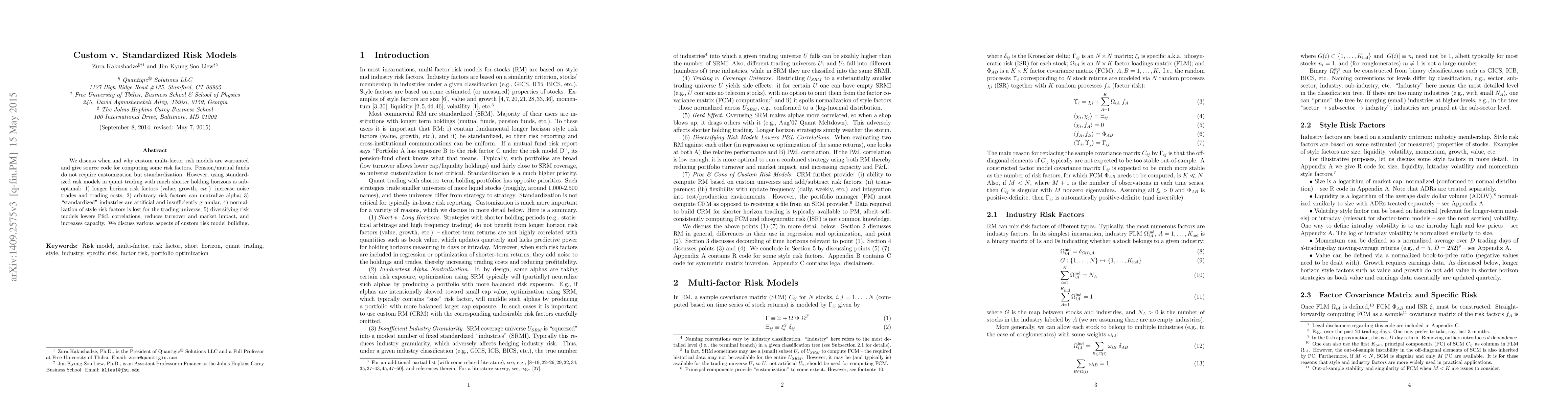 We discuss when and why custom multi-factor risk models are warranted and give source code for computing some risk factors. Pension/mutual funds do not require customization but standardization. However, using standardized risk models in quant trading with much shorter holding horizons is suboptimal: 1) longer horizon risk factors (value, growth, etc.) increase noise trades and trading costs; 2) arbitrary risk factors can neutralize alpha; 3) "standardized" industries are artificial and insufficiently granular; 4) normalization of style risk factors is lost for the trading universe; 5) diversifying risk models lowers P&L correlations, reduces turnover and market impact, and increases capacity. We discuss various aspects of custom risk model building.