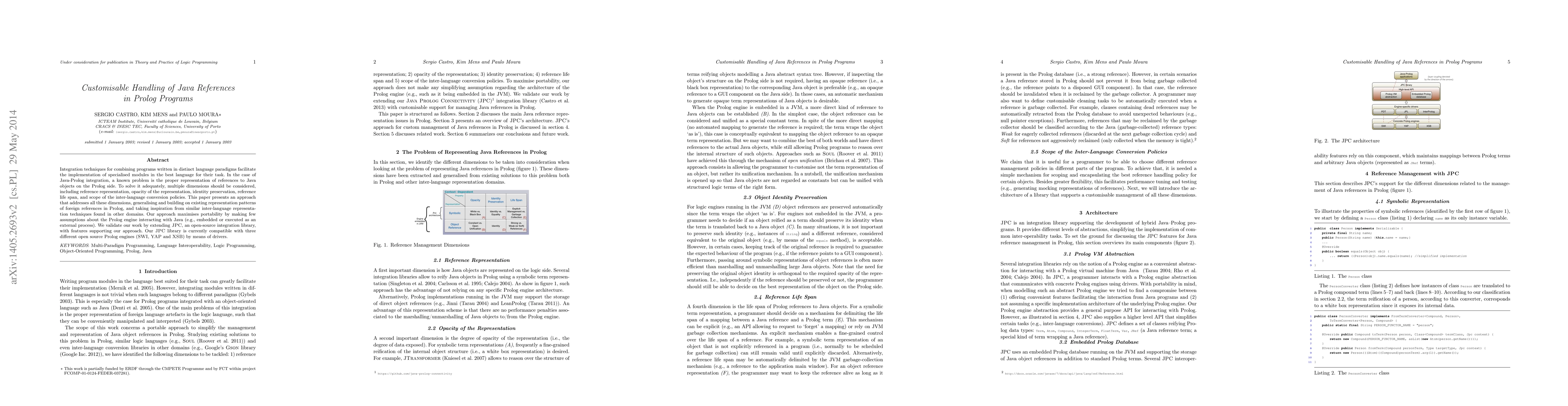 This paper proposes an adaptable method for managing Java references in Prolog programs, addressing multiple aspects like reference representation, identity, and lifespan. The approach is validated by extending the JPC library, ensuring compatibility with several Prolog engines.