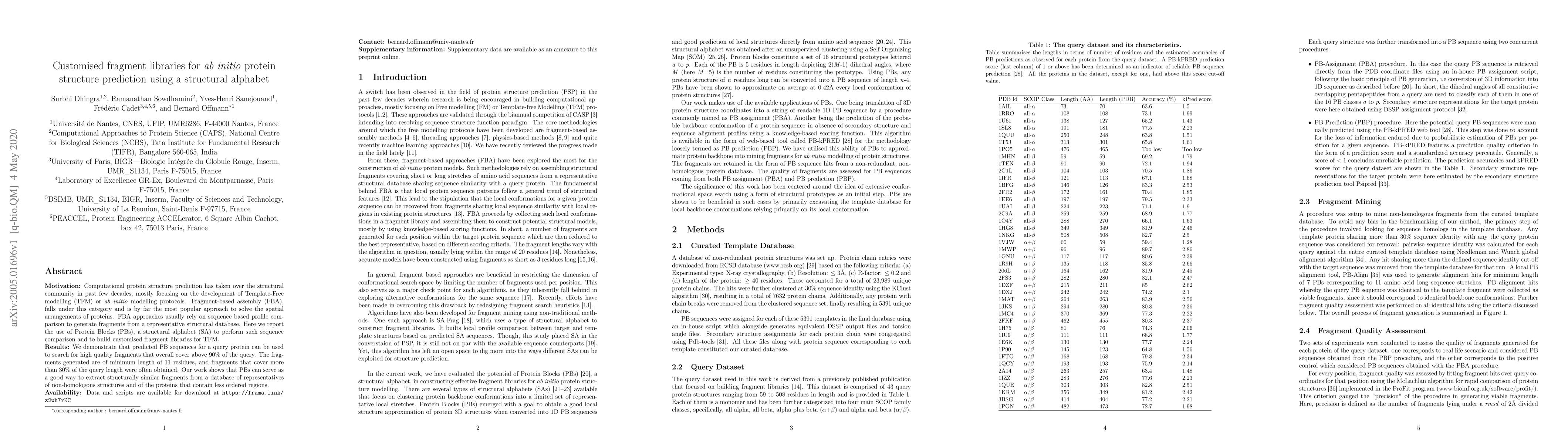 This paper proposes using Protein Blocks (PBs), a structural alphabet, to create customized fragment libraries for ab initio protein structure prediction. The method achieves high coverage of query proteins by extracting structurally similar fragments from a database of non-homologous structures, demonstrating the effectiveness of PBs in Template-Free modelling.