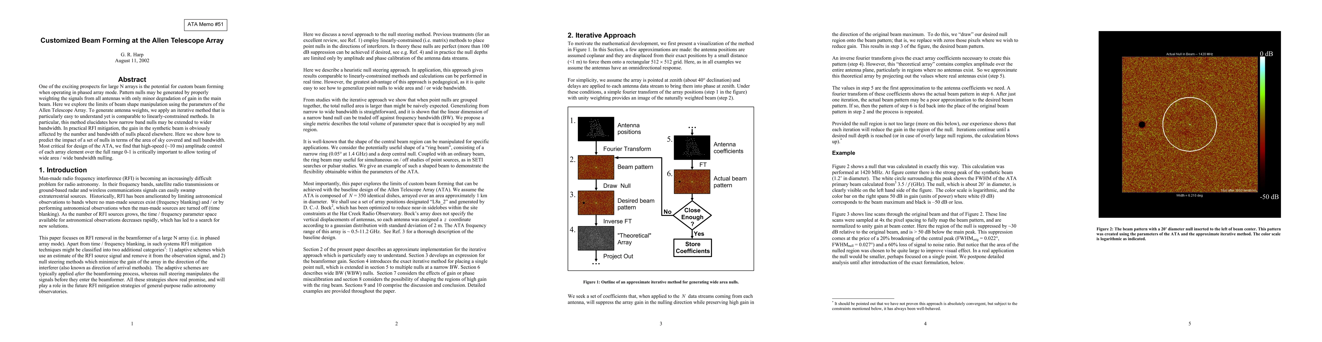 One of the exciting prospects for large N arrays is the potential for custom beam forming when operating in phased array mode. Pattern nulls may be generated by properly weighting the signals from all antennas with only minor degradation of gain in the main beam. Here we explore the limits of beam shape manipulation using the parameters of the Allen Telescope Array. To generate antenna weights, we apply an iterative method that is particularly easy to understand yet is comparable to linearly-constrained methods. In particular, this method elucidates how narrow band nulls may be extended to wider bandwidth. In practical RFI mitigation, the gain in the synthetic beam is obviously affected by the number and bandwidth of nulls placed elsewhere. Here we show how to predict the impact of a set of nulls in terms of the area of sky covered and null bandwidth. Most critical for design of the ATA, we find that high-speed (~10 ms) amplitude control of each array element over the full range 0-1 is critically important to allow testing of wide area / wide bandwidth nulling.