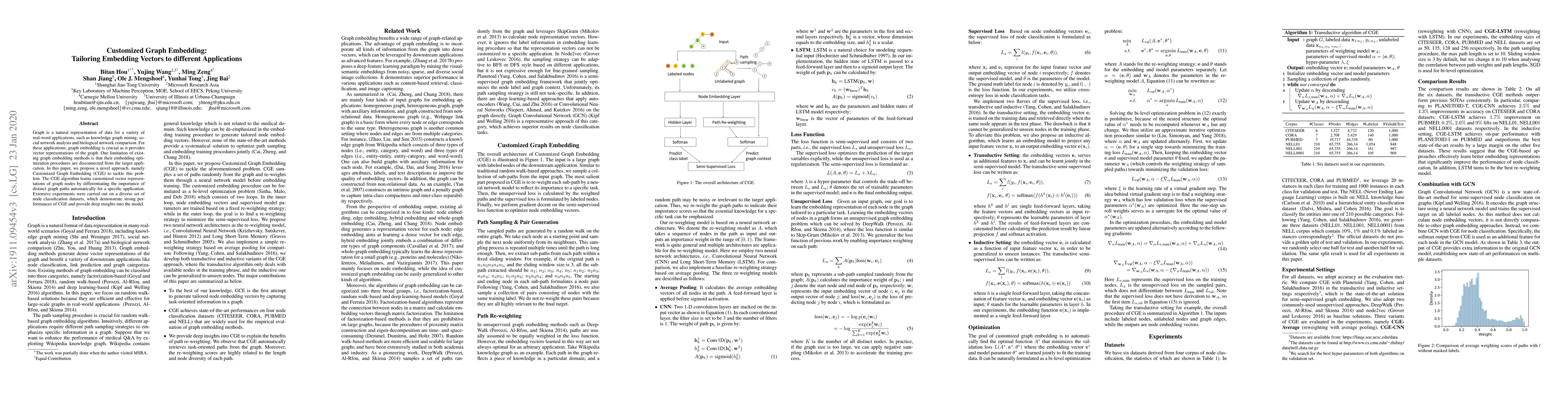 This paper introduces Customized Graph Embedding (CGE), a novel method that tailors vector representations of graph nodes for specific applications by differentiating the importance of distinct graph paths. Experiments on various node classification datasets show CGE's strong performance and provide insights into its effectiveness.