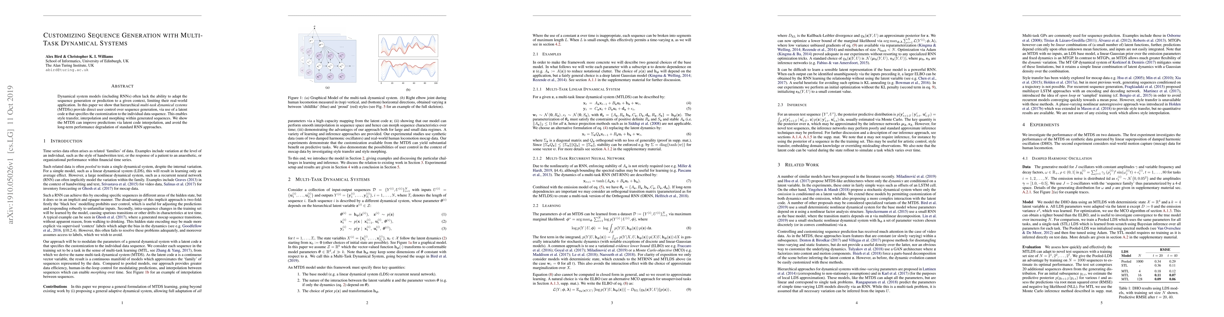 This paper proposes hierarchical multi-task dynamical systems (MTDSs) to enhance sequence generation adaptability by introducing a latent code $\mathbf{z}$ for customization. The MTDSs enable style transfer, interpolation, and morphing within sequences, improving prediction accuracy and avoiding performance degradation seen in standard RNNs.