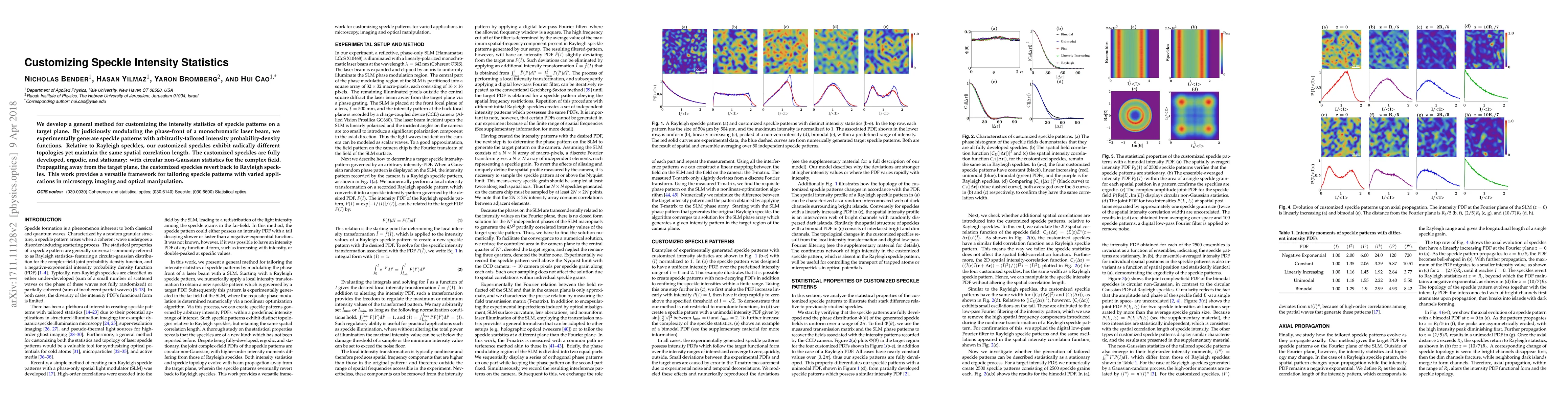 This paper presents a method to modulate the phase-front of a laser beam to generate speckle patterns with tailored intensity statistics, maintaining spatial correlation while exhibiting different topologies and non-Gaussian statistics. The customized speckles revert to Rayleigh speckles upon propagation, offering versatile applications in microscopy and imaging.