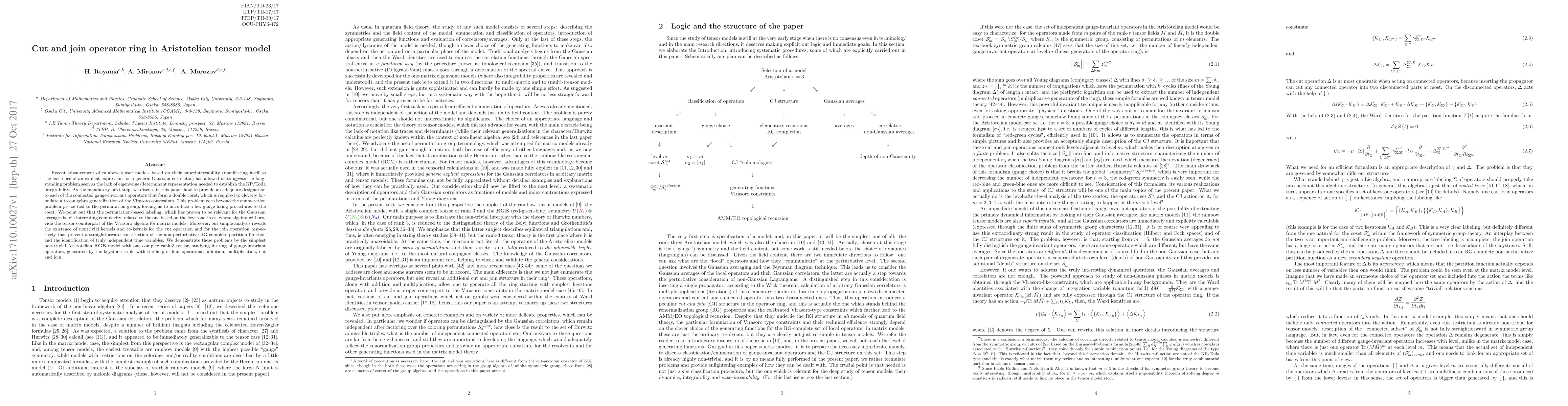 This paper explores the ring of gauge-invariant operators in Aristotelian tensor models, focusing on the cut and join operations. It introduces a method to label these operators and discusses the complexities that arise, revealing nontrivial kernels and co-kernels that complicate the construction of the partition function and identification of independent time variables.