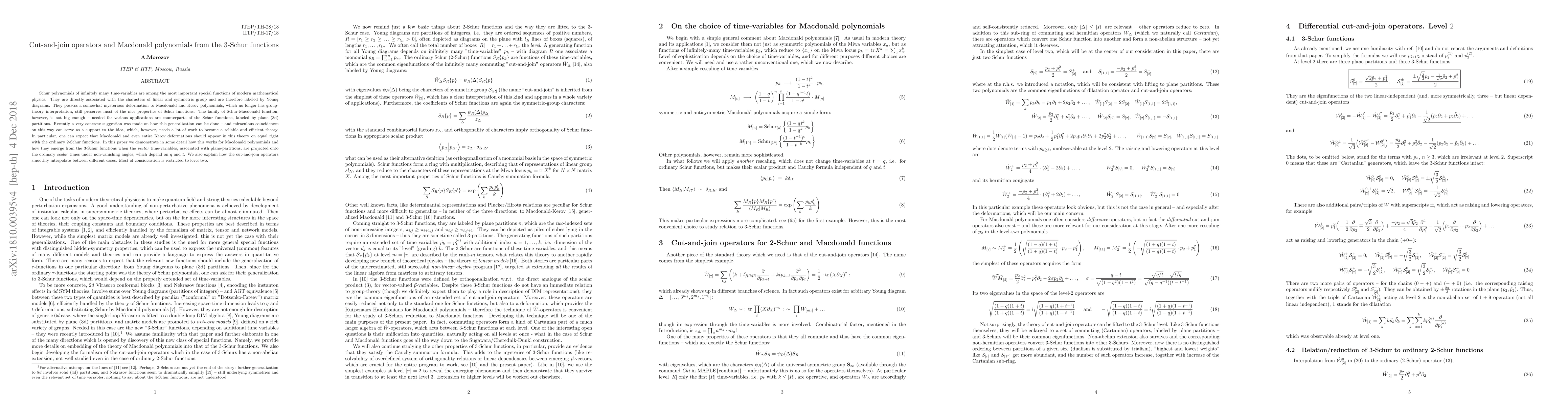 This paper explores the emergence of Macdonald polynomials from 3-Schur functions through projection of plane-partition vectors, revealing a smooth interpolation via cut-and-join operators, primarily focusing on level two.