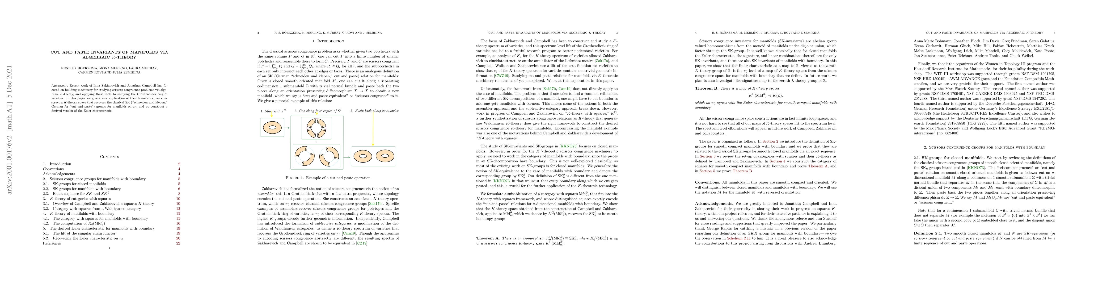 Recent work of Jonathan Campbell and Inna Zakharevich has focused on building machinery for studying scissors congruence problems via algebraic $K$-theory, and applying these tools to studying the Grothendieck ring of varieties. In this paper we give a new application of their framework: we construct a $K$-space that recovers the classical $\mathrm{SK}$ ("schneiden und kleben," German for "cut and paste") groups for manifolds on $\pi_0$, and we construct a derived version of the Euler characteristic.