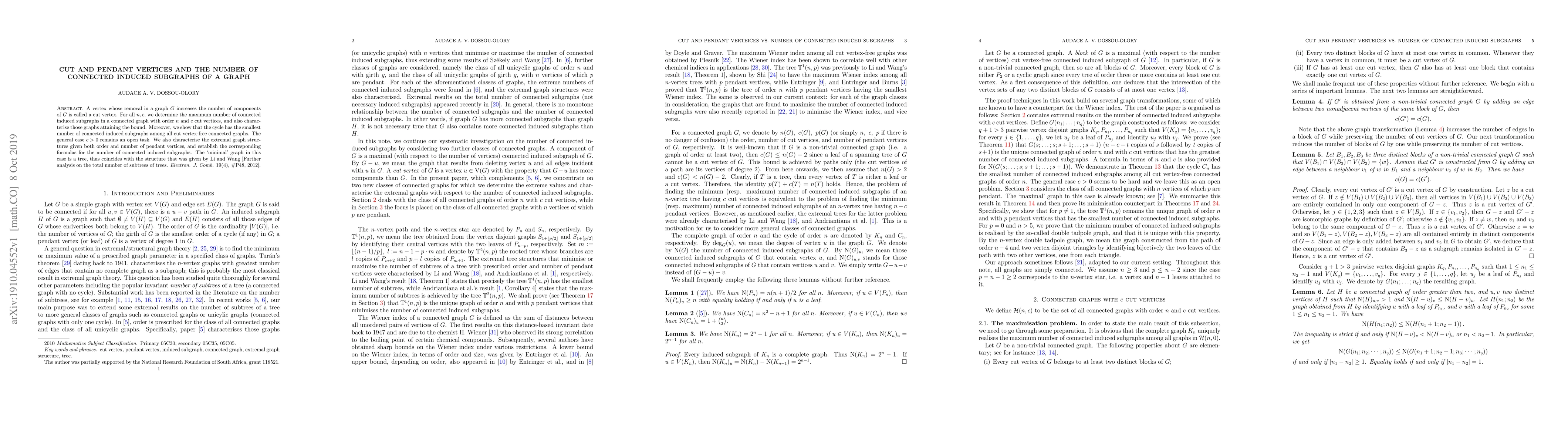 This paper investigates the relationship between cut vertices and the number of connected induced subgraphs in graphs. It determines the maximum number of connected induced subgraphs in graphs with a given number of cut vertices and characterizes the extremal structures, concluding that trees represent the "minimal" graph structures in this context.