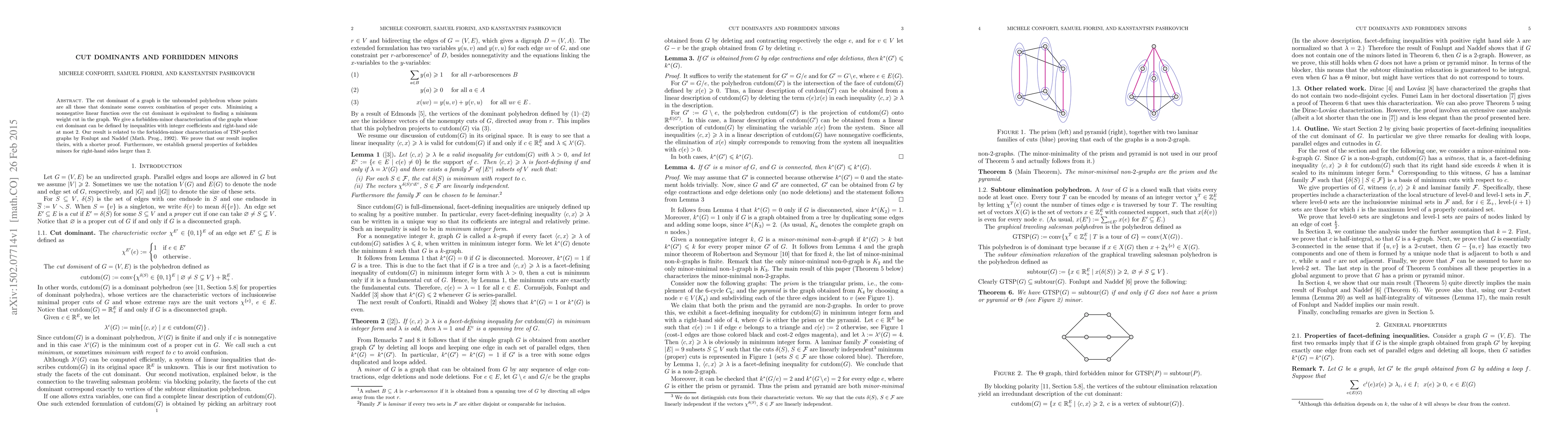 The cut dominant of a graph is the unbounded polyhedron whose points are all those that dominate some convex combination of proper cuts. Minimizing a nonnegative linear function over the cut dominant is equivalent to finding a minimum weight cut in the graph. We give a forbidden-minor characterization of the graphs whose cut dominant can be defined by inequalities with integer coefficients and right-hand side at most 2. Our result is related to the forbidden-minor characterization of TSP-perfect graphs by Fonlupt and Naddef (Math. Prog., 1992). We prove that our result implies theirs, with a shorter proof. Furthermore, we establish general properties of forbidden minors for right-hand sides larger than 2.