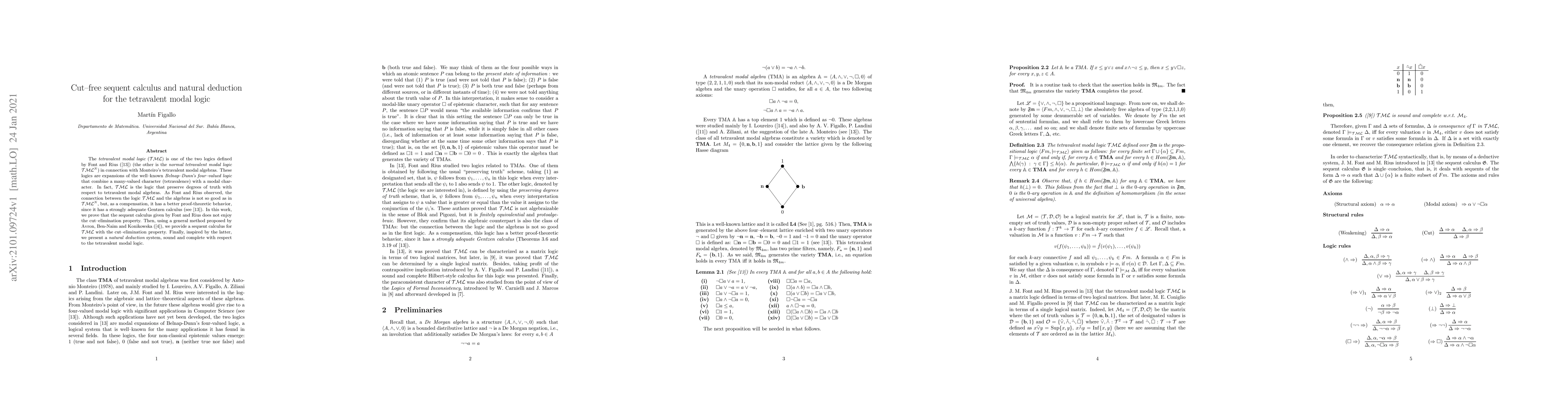 The paper presents a cut-free sequent calculus and a natural deduction system for the tetravalent modal logic TML, along with new proofs of its properties using these systems.