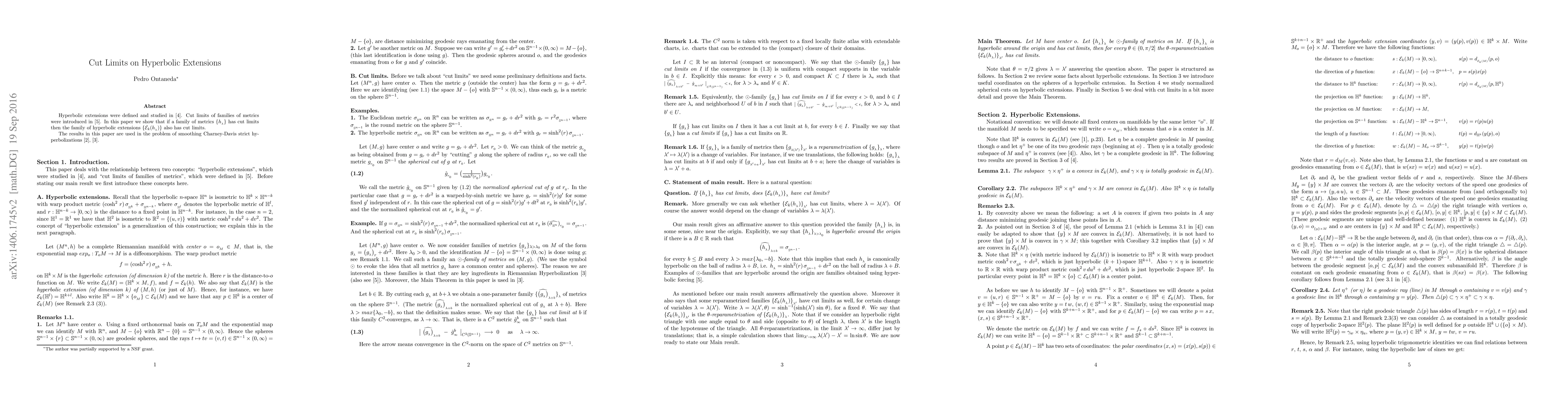 We study the relationship between two concepts: cut limits and hyperbolic extensions.