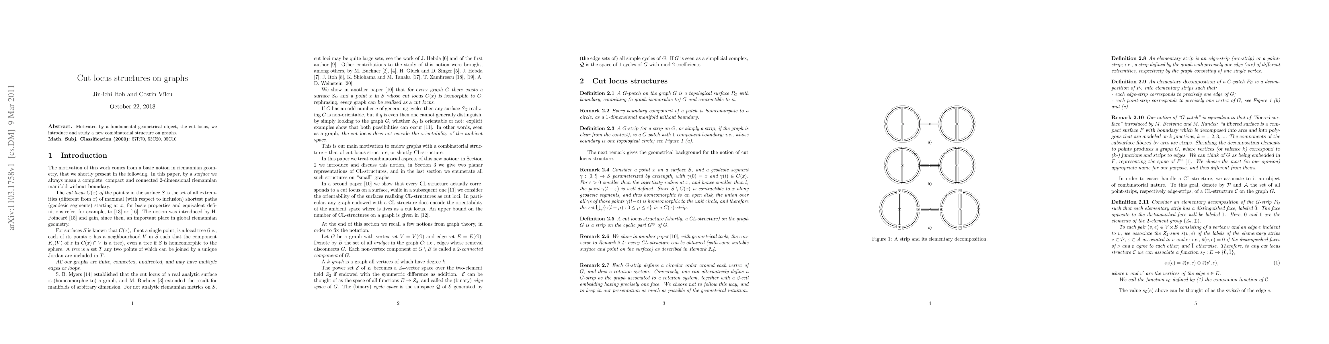 Two-line summary: This paper introduces and investigates a novel combinatorial structure on graphs inspired by the geometric concept of the cut locus. The study aims to understand the properties and implications of this new structure within the context of graph theory.