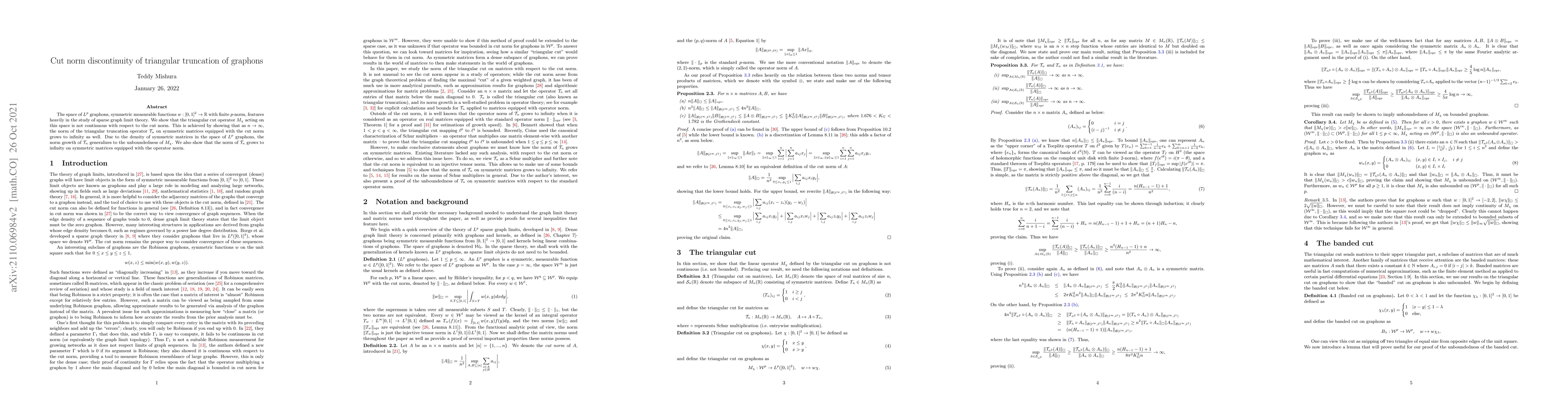 The space of $L^p$ graphons, symmetric measurable functions $w: [0,1]^2 \to \mathbb{R}$ with finite $p$-norm, features heavily in the study of sparse graph limit theory. We show that the triangular cut operator $M_{\chi}$ acting on this space is not continuous with respect to the cut norm. This is achieved by showing that as $n\to \infty$, the norm of the triangular truncation operator $\mathcal{T}_n$ on symmetric matrices equipped with the cut norm grows to infinity as well. Due to the density of symmetric matrices in the space of $L^p$ graphons, the norm growth of $\mathcal{T}_n$ generalizes to the unboundedness of $M_{\chi}$. We also show that the norm of $\mathcal{T}_n$ grows to infinity on symmetric matrices equipped with the operator norm.