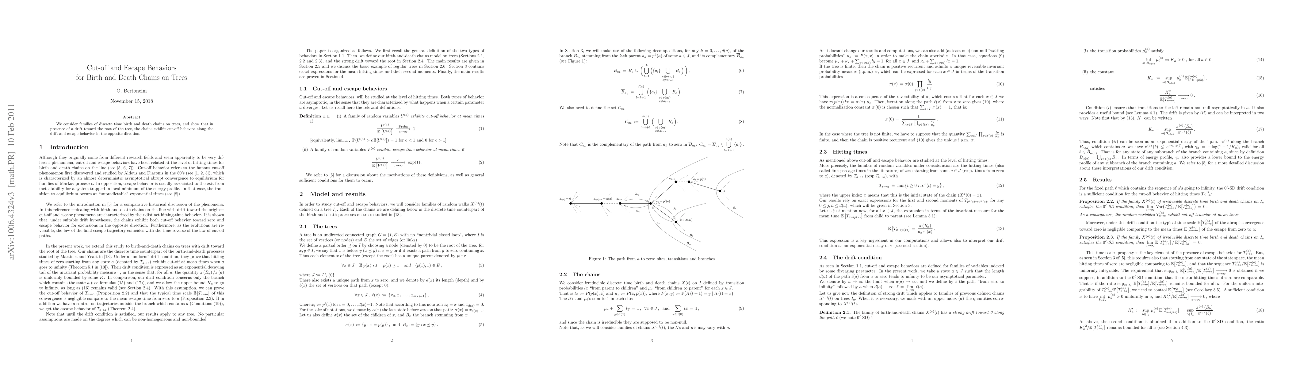We consider families of discrete time birth and death chains on trees, and show that in presence of a drift towards the root of the tree, the chains exhibit cut-off behavior along the drift and escape behavior in the opposite direction.