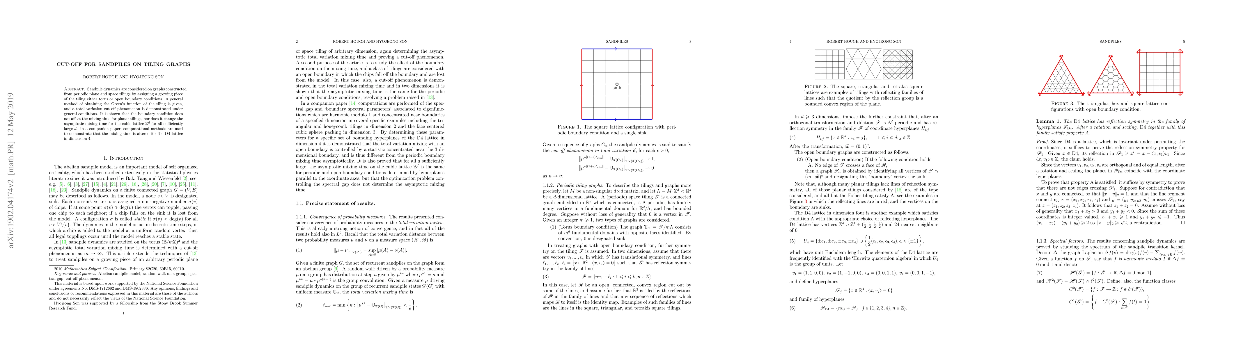 Sandpile dynamics are considered on graphs constructed from periodic plane and space tilings by assigning a growing piece of the tiling either torus or open boundary conditions. A general method of obtaining the Green's function of the tiling is given, and a total variation cut-off phenomenon is demonstrated under general conditions. It is shown that the boundary condition does not affect the mixing time for planar tilings, nor does it change the asymptotic mixing time for the cubic lattice $\zed^d$ for all sufficiently large $d$. In a companion paper, computational methods are used to demonstrate that the mixing time is altered for the $\Dfour$ lattice in dimension 4.