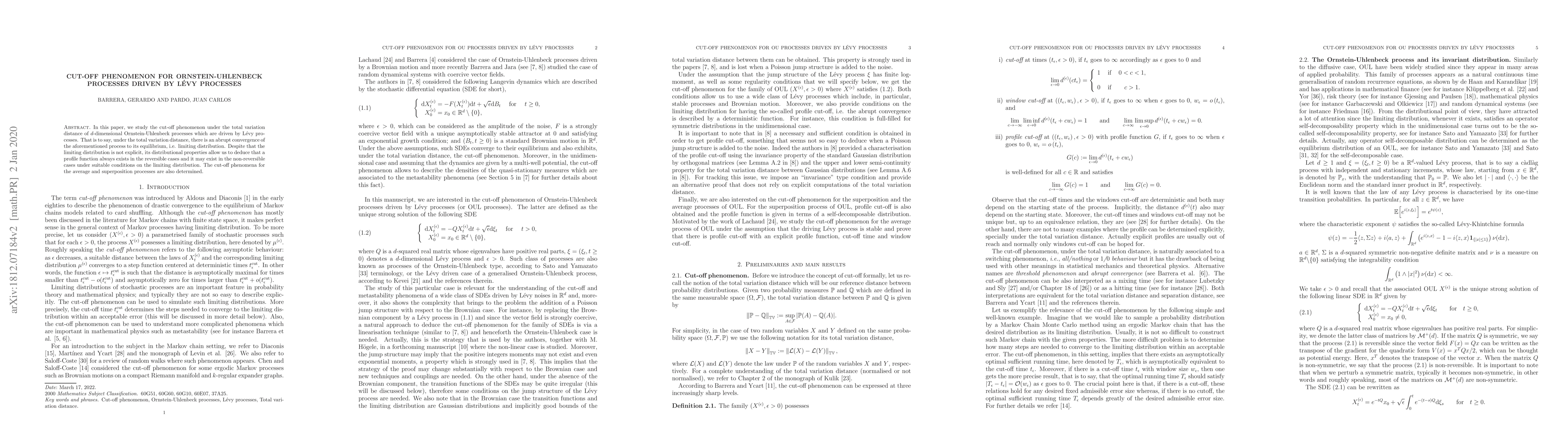 This paper investigates the cut-off phenomenon in $d$-dimensional Ornstein-Uhlenbeck processes driven by Lévy processes, demonstrating abrupt convergence to equilibrium under total variation distance. The study reveals the existence of a profile function in reversible cases and potential existence under specific conditions for non-reversible cases.