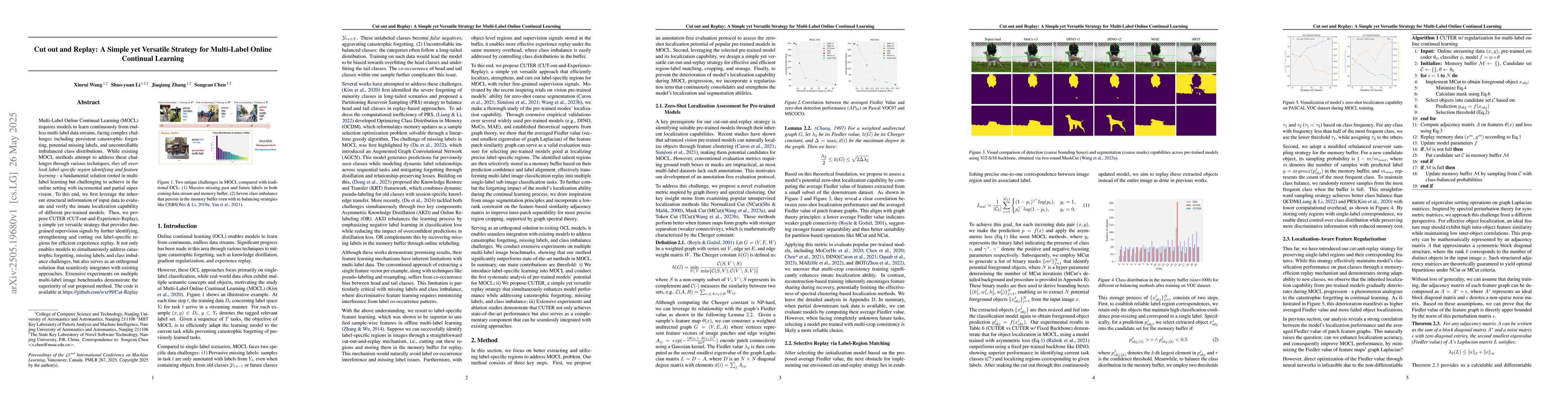 A new approach called CUTER (Cut-out-and-Experience-Replay) is proposed to address challenges in multi-label online continual learning, providing a simple yet versatile strategy for models to learn from endless data streams.