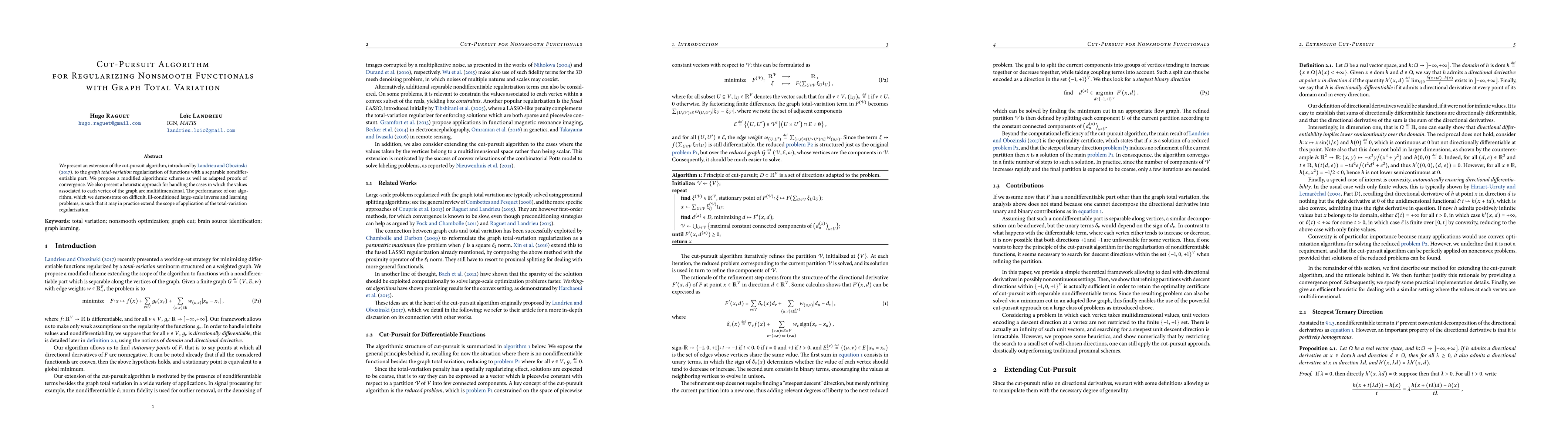 This paper extends the cut-pursuit algorithm to handle graph total variation regularization for nonsmooth, separable functions, proposing a modified scheme and convergence proofs. It also introduces a heuristic for multidimensional vertex values, demonstrating improved performance on large-scale inverse and learning problems.