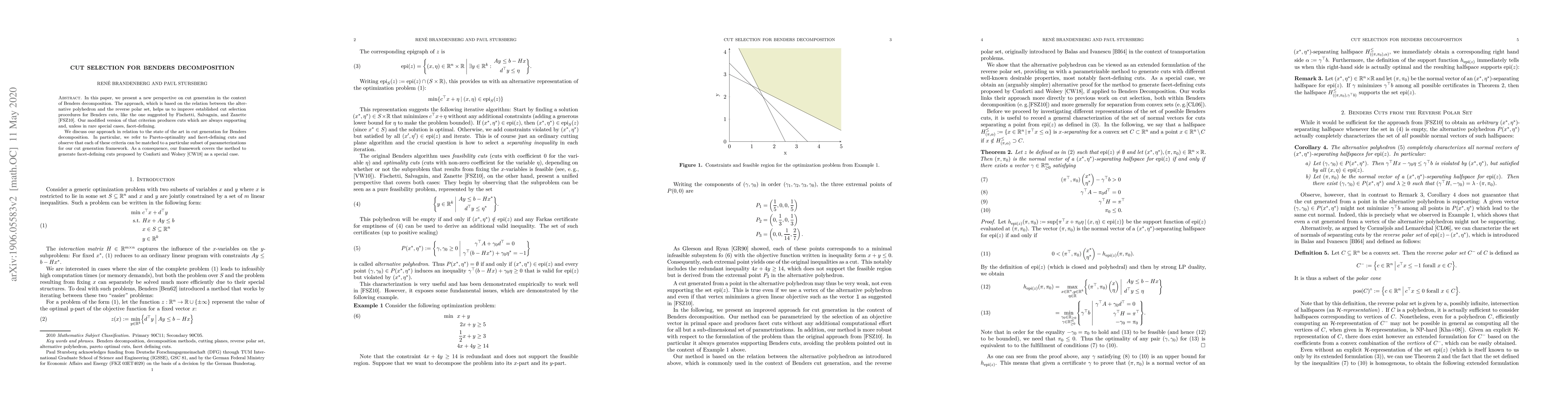 The paper presents a new perspective on cut generation in Benders decomposition, leveraging the relation between the alternative polyhedron and the reverse polar set to improve established cut selection procedures.