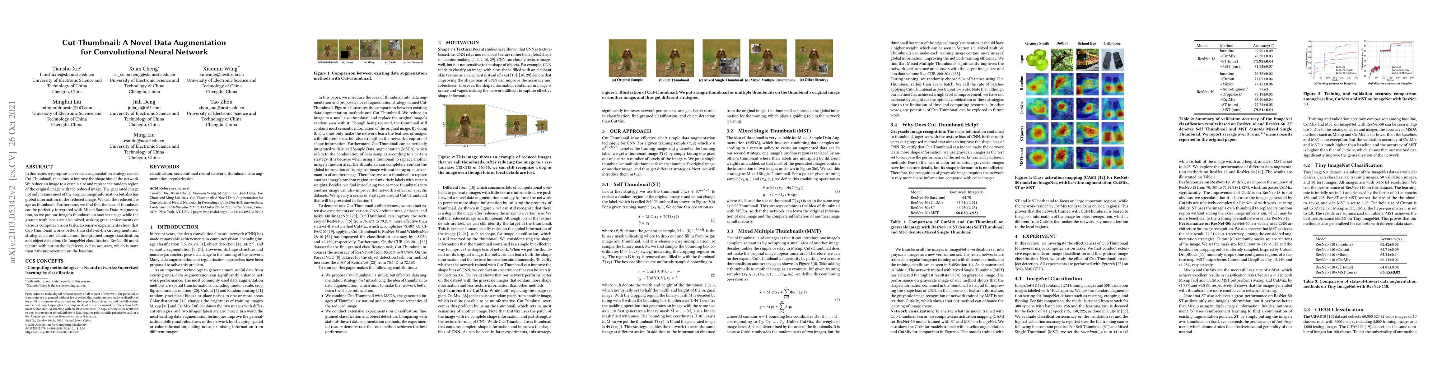 Researchers propose a novel data augmentation method called Cut-Thumbnail to improve convolutional neural network performance, achieving 2.8% higher accuracy on ImageNet classification with ResNet-50 architecture.