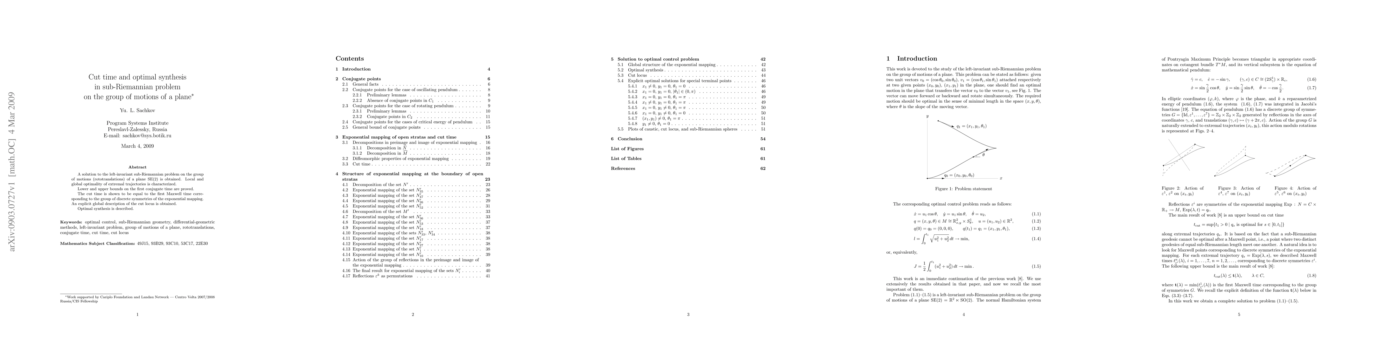 The paper presents a solution to the sub-Riemannian problem on the group of plane rototranslations (SE(2)), characterizing local and global optimality of extremal trajectories and proving bounds on the first conjugate time. It also shows that the cut time equals the first Maxwell time, and provides an explicit global description of the cut locus along with an optimal synthesis.