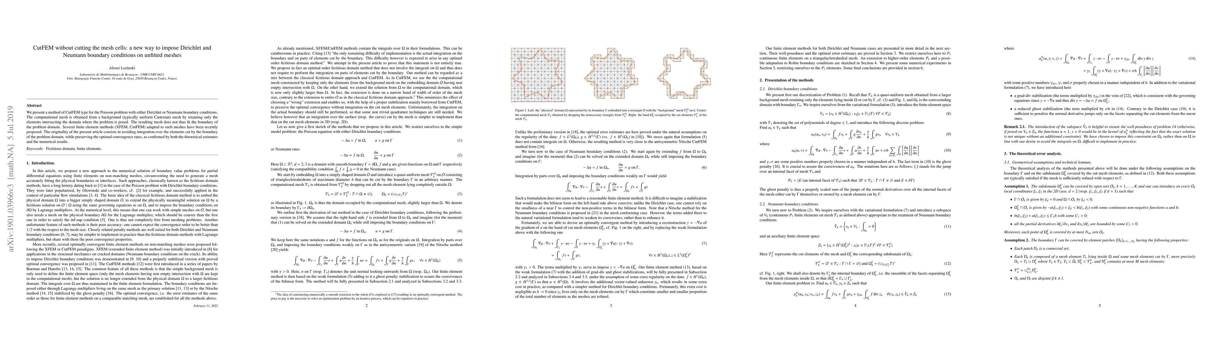 This paper introduces a novel CutFEM approach that imposes Dirichlet and Neumann boundary conditions on unfitted meshes without requiring the mesh cells to be cut. The method maintains optimal convergence rates, as demonstrated by theoretical analysis and numerical results, while avoiding integration over cut elements.