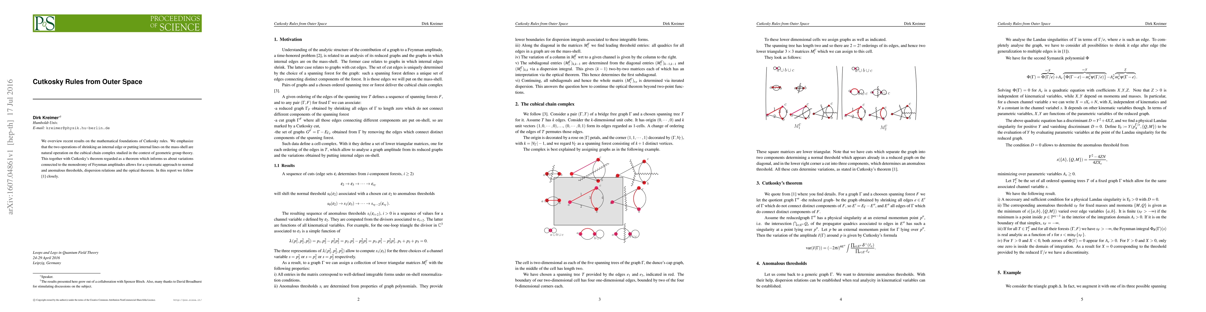 We overview recent results on the mathematical foundations of Cutkosky rules. We emphasize that the two operations of shrinking an internal edge or putting internal lines on the mass-shell are natural operation on the cubical chain complex studied in the context of geometric group theory. This together with Cutkosky's theorem regarded as a theorem which informs us about variations connected to the monodromy of Feynman amplitudes allows for a systematic approach to normal and anomalous thresholds, dispersion relations and the optical theorem. In this report we follow [1] closely.