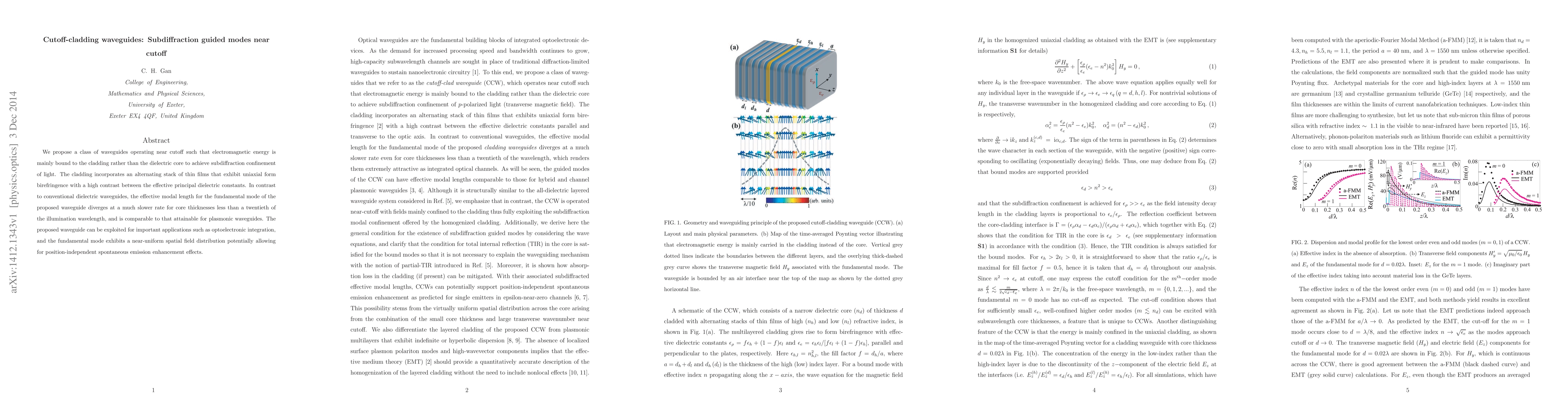 This paper proposes a novel class of cutoff-cladding waveguides with subdiffraction light confinement achieved by binding electromagnetic energy to the cladding instead of the core. The waveguide utilizes an alternating stack of thin films in the cladding to achieve high contrast uniaxial form birefringence, resulting in effective modal lengths comparable to plasmonic waveguides, suitable for optoelectronic integration.