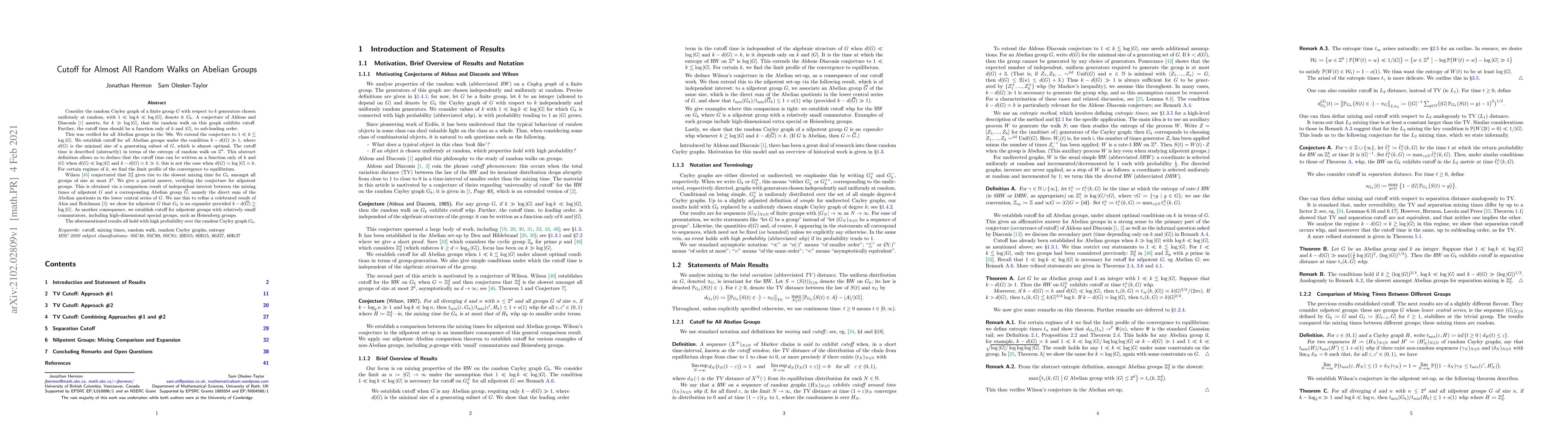 The paper verifies a conjecture about cutoff times for random walks on Cayley graphs of finite Abelian groups, establishing cutoff under new conditions and providing insights into mixing times and expansion properties for nilpotent groups.