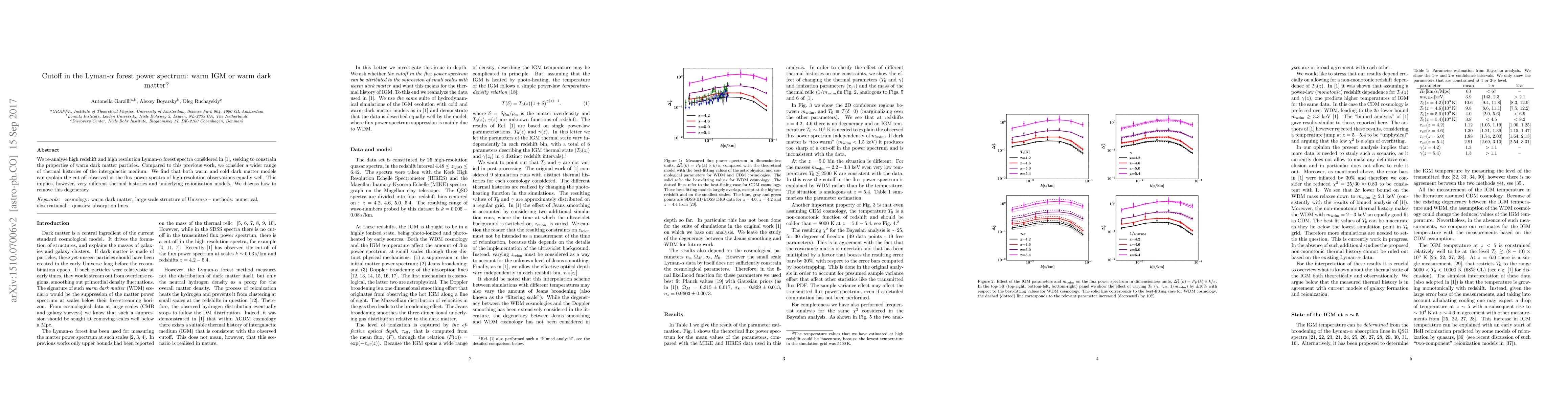 This paper re-analyzes high-redshift Lyman-$\alpha$ forest spectra to constrain warm dark matter properties, finding that both warm and cold dark matter models can explain observed cutoffs equally well, indicating different thermal histories and re-ionization models. The study discusses methods to disentangle these models.