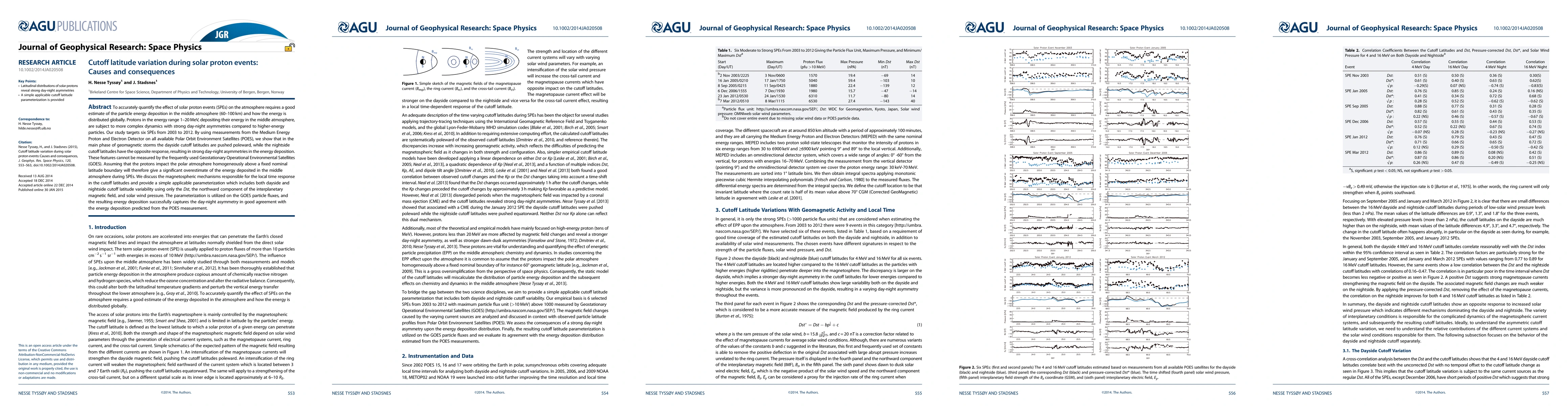 Research found that solar proton events cause day-night asymmetries in energy deposition in the middle atmosphere, with protons depositing more energy at dayside cutoff latitudes than nightside.