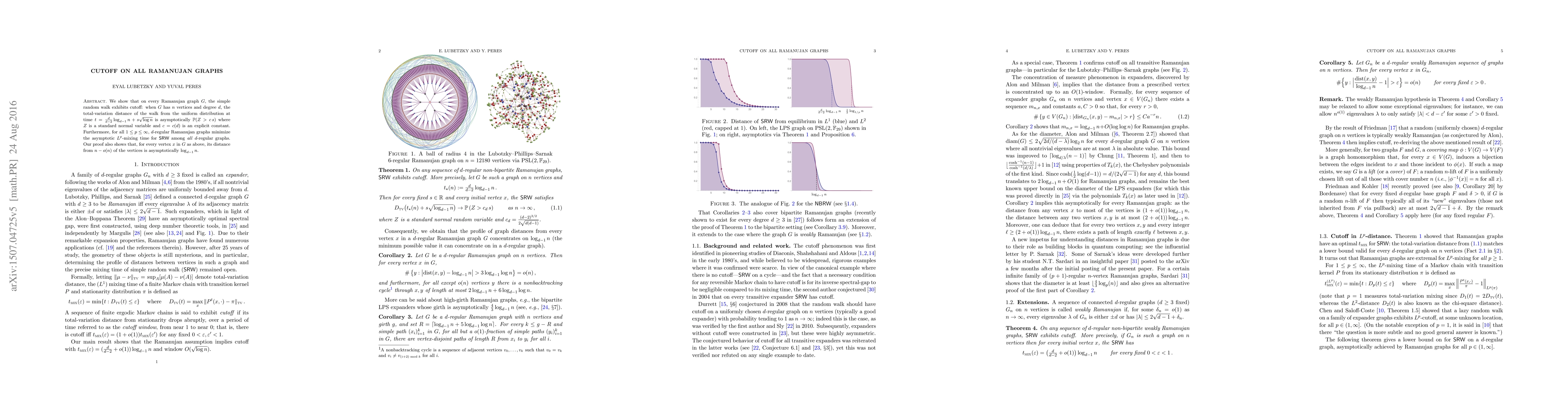 This paper demonstrates that simple random walks on Ramanujan graphs exhibit cutoff behavior, where the mixing time is sharply determined. It also proves that $d$-regular Ramanujan graphs minimize the $L^p$-mixing time for $1 \leq p \leq \infty$ among all $d$-regular graphs.