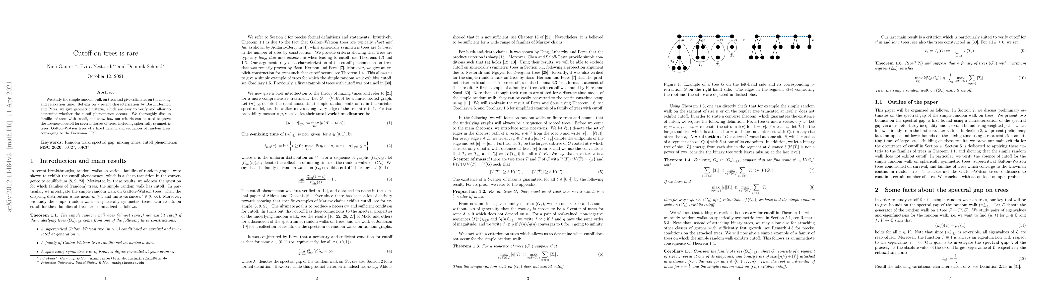 Researchers studied whether a phenomenon called cutoff occurs on trees in random walks, finding that it is rare and can be predicted using geometric criteria. They also demonstrated its absence for certain types of trees, such as spherical and Galton-Watson trees.